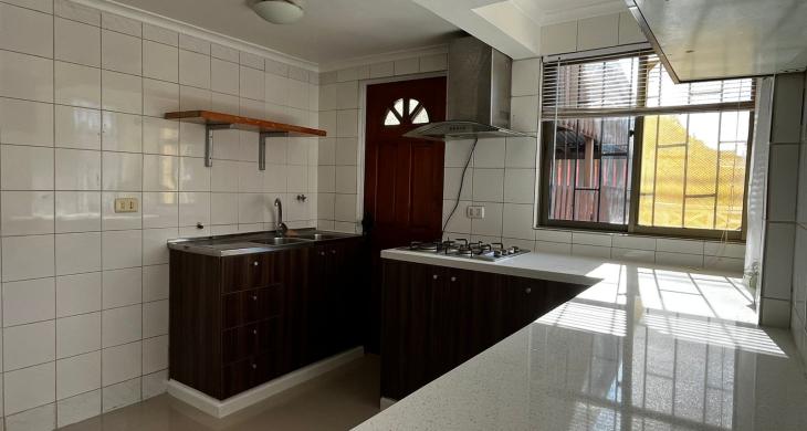 Cocina concepto abierto, moderna, equipada y amoblada