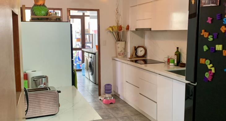 • Planta Baja: Elegante hall de acceso, cuarto de estar, comedor independiente y cocina moderna totalmente equipada (horno y encimera eléctrica). Incluye además un dormitorio, baño completo y amplia lavandería.