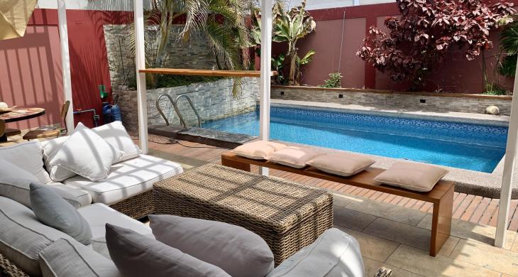 • El Oasis Privado: Patio trasero diseñado para el relajo, con finas terminaciones en Pino Oregón Americano. Cuenta con piscina, jardín consolidado y espacio ideal para proyectar quincho, bar o terrazas.