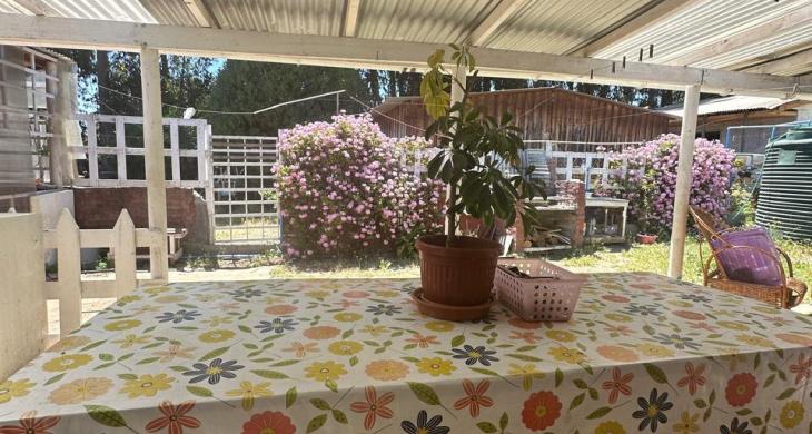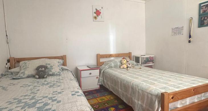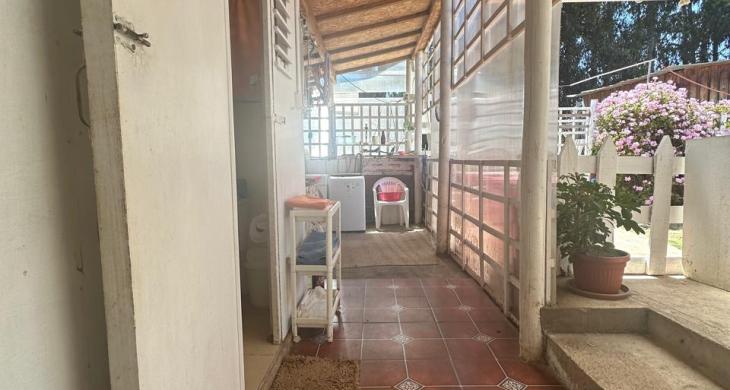 Casa de dos habitaciones baño exterior pasillo cocina amplia y comoda ams living comedor .