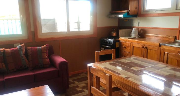 Las cabañas tienen pisos con cerámicos, ventanas termo panel, aire acondicionado, una cabaña esta en el primer piso y la segunda arriba de la primera, ambas tiene acceso independiente y se encuentran al lado de una casa. EL VALOR INCLUYE EL AGUA.