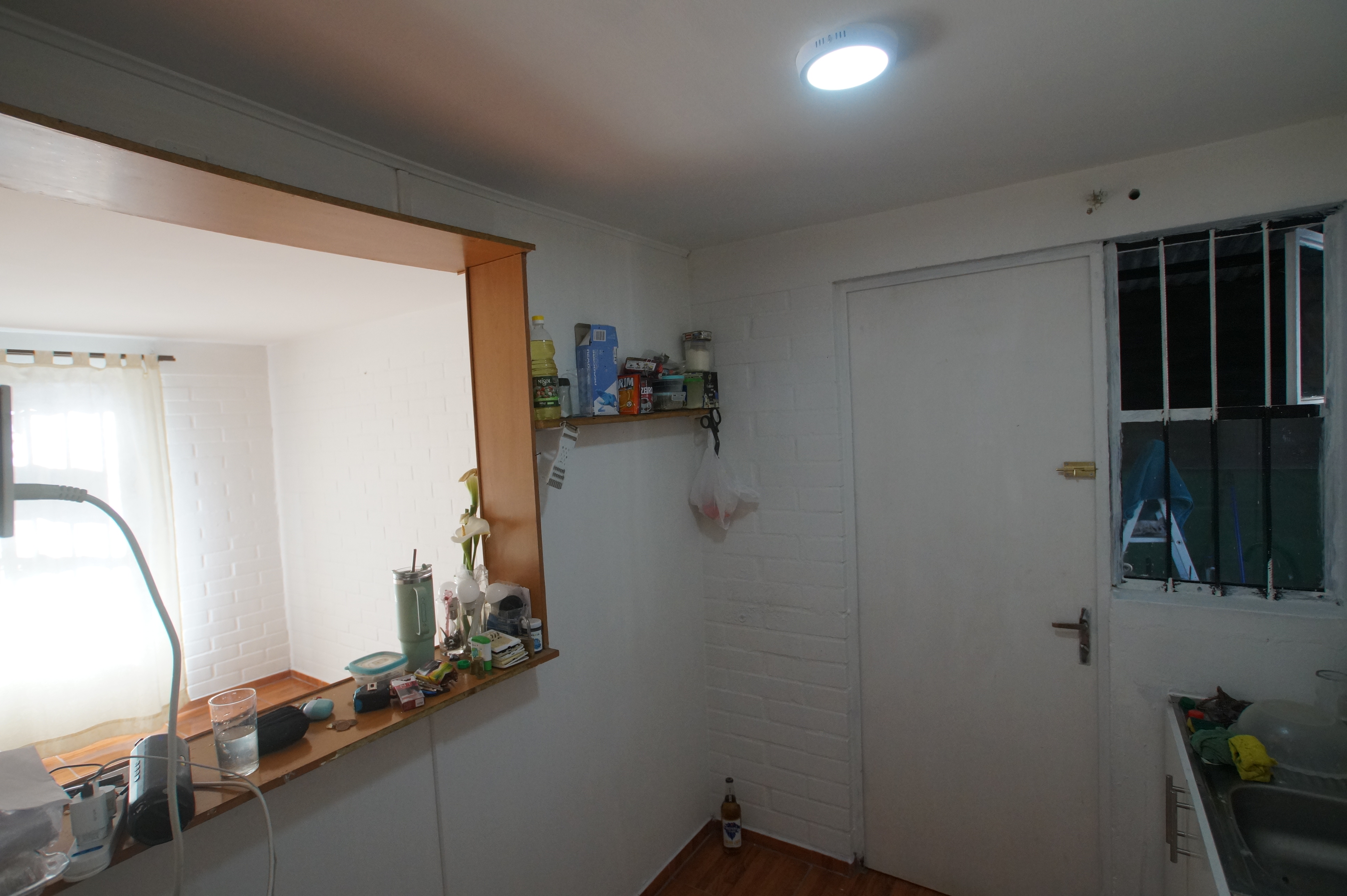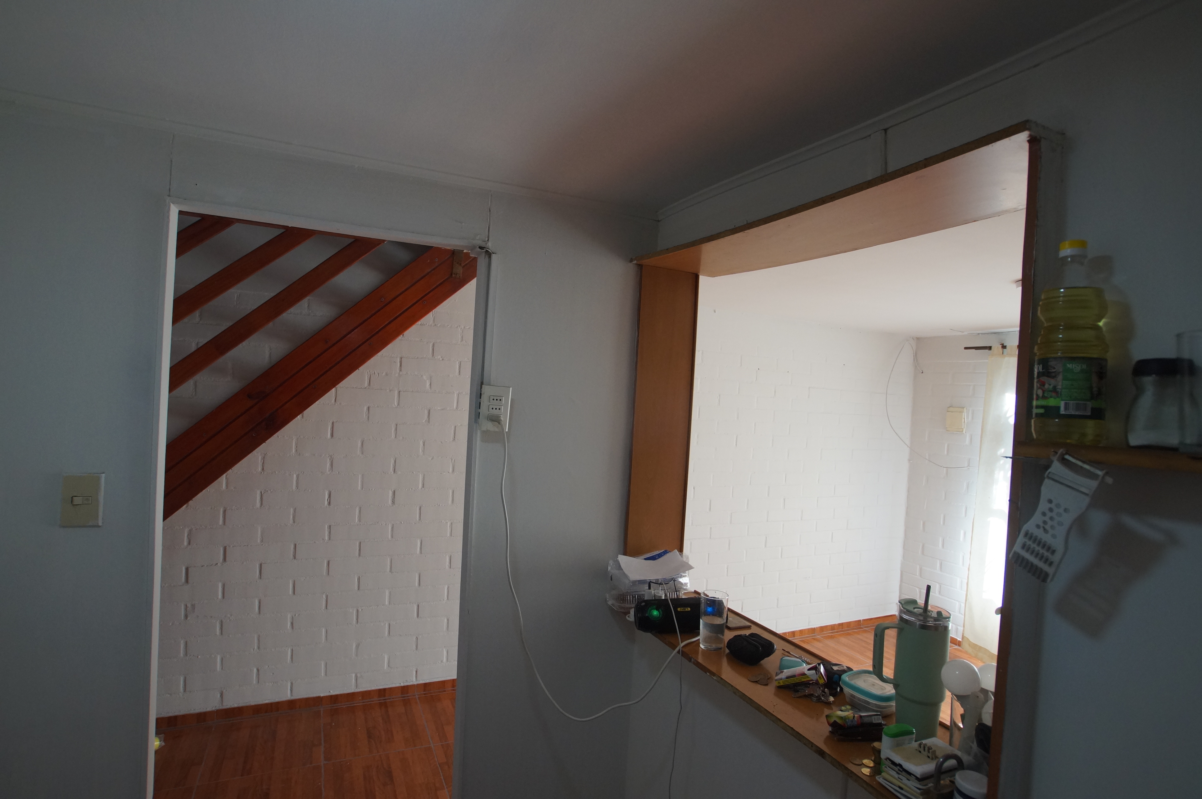 La casa es de dos pisos , arriba tiene dos habitaciones amplias con piso de cerámica recién instalada . Abajo encontramos la cocina, living y comedor, baño con cerámica completa y accesorios nuevos. Espacio amplios, buena distribución.