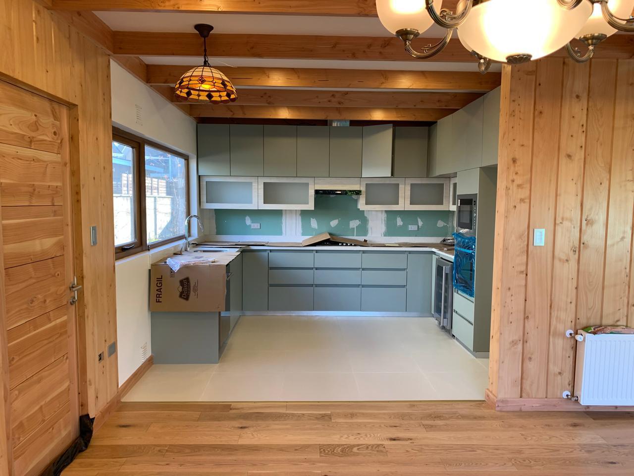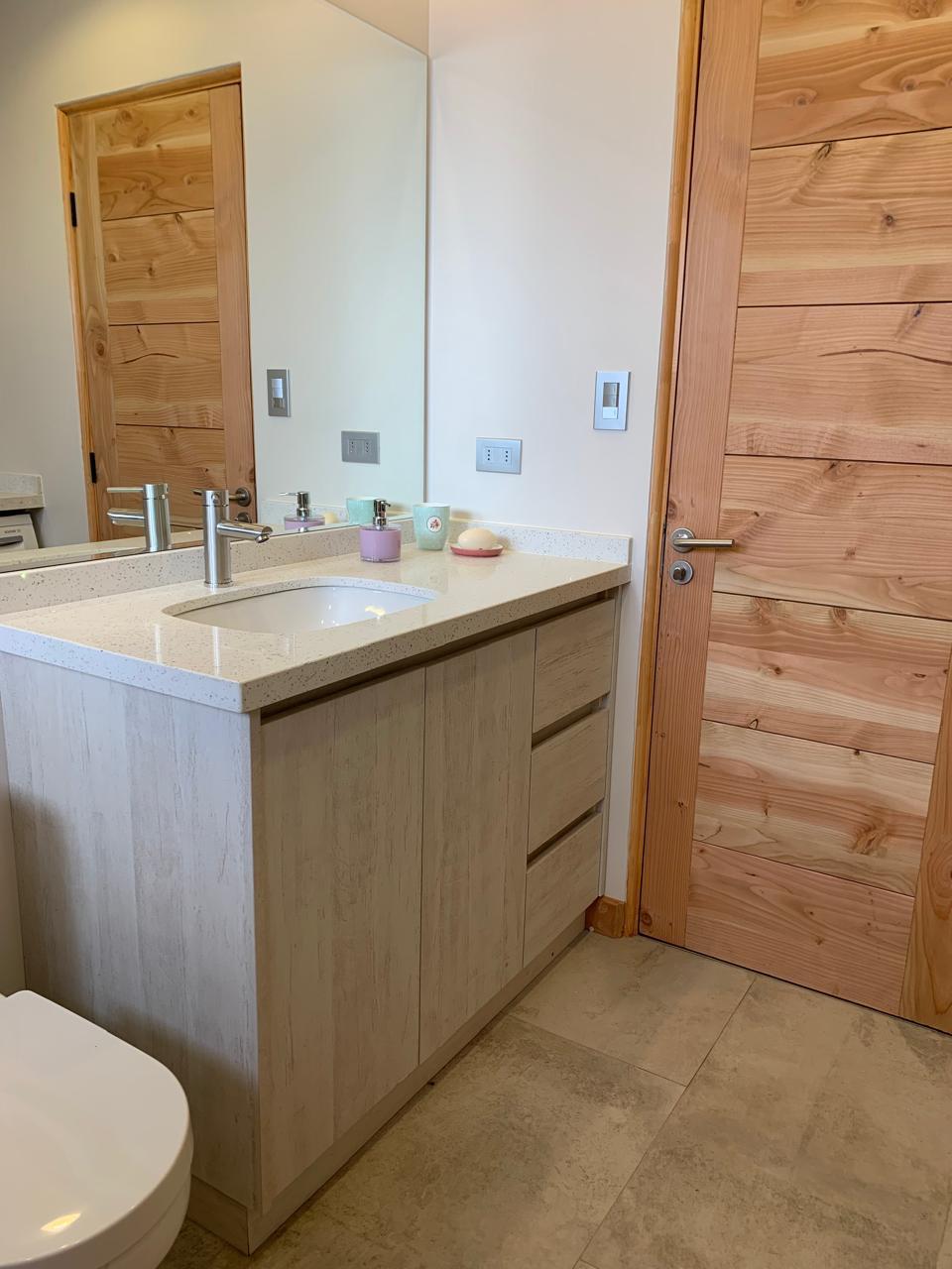 Área común: Hall de acceso, amplio living comedor, cocina americana amoblada completamente equipada con horno eléctrico , encimera, despensa y campana extractor, finas terminaciones, vigas a la vista.