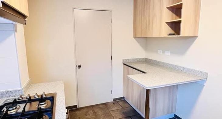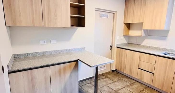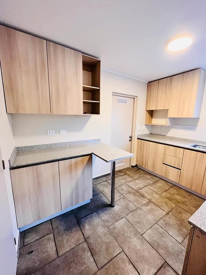 Cocina cubierta granito, equipada:horno, campana y encimera, posee meson de comedor diario