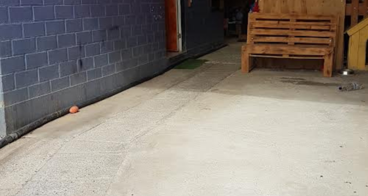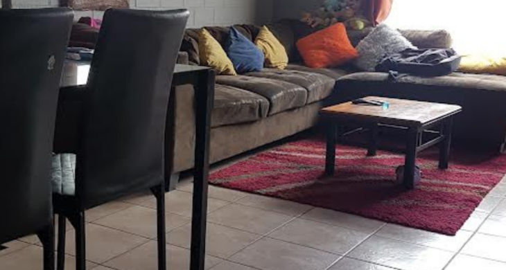 Pisos de baldosa, cemento y alfombra.