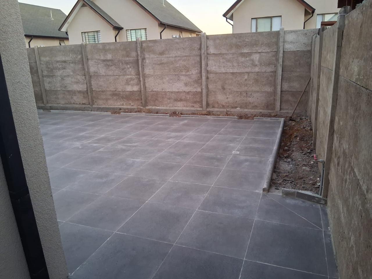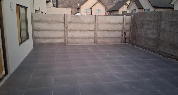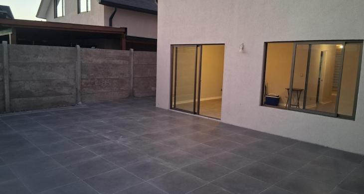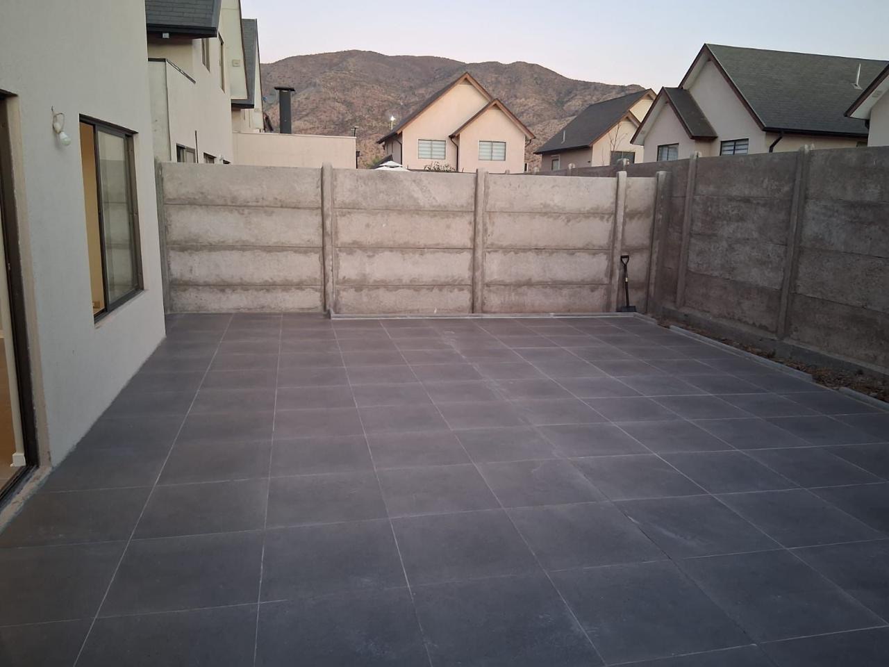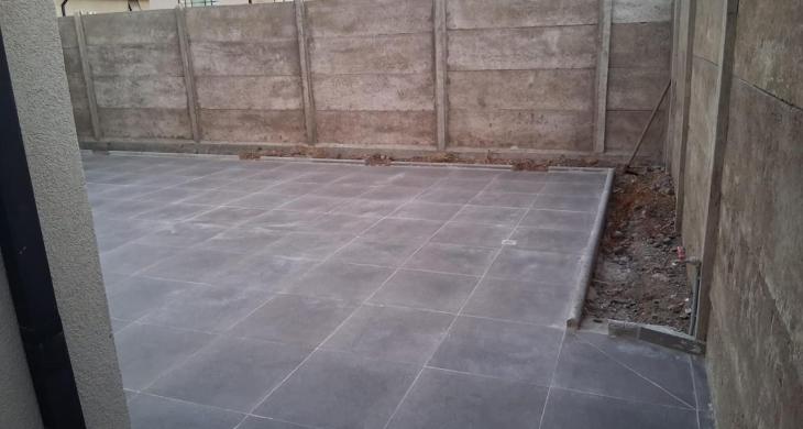 Patio trasero con elegante piso de porcelanato