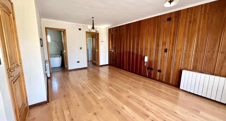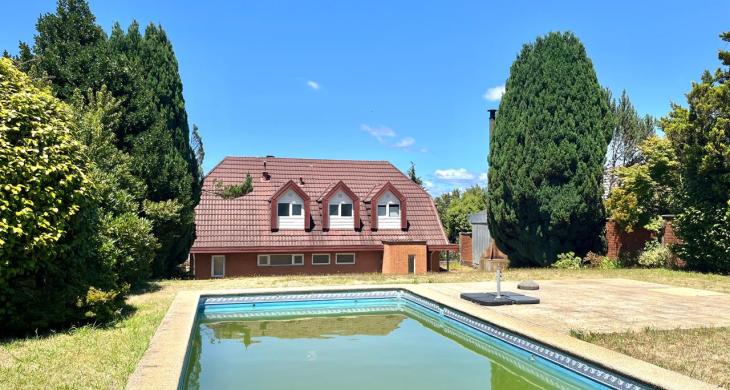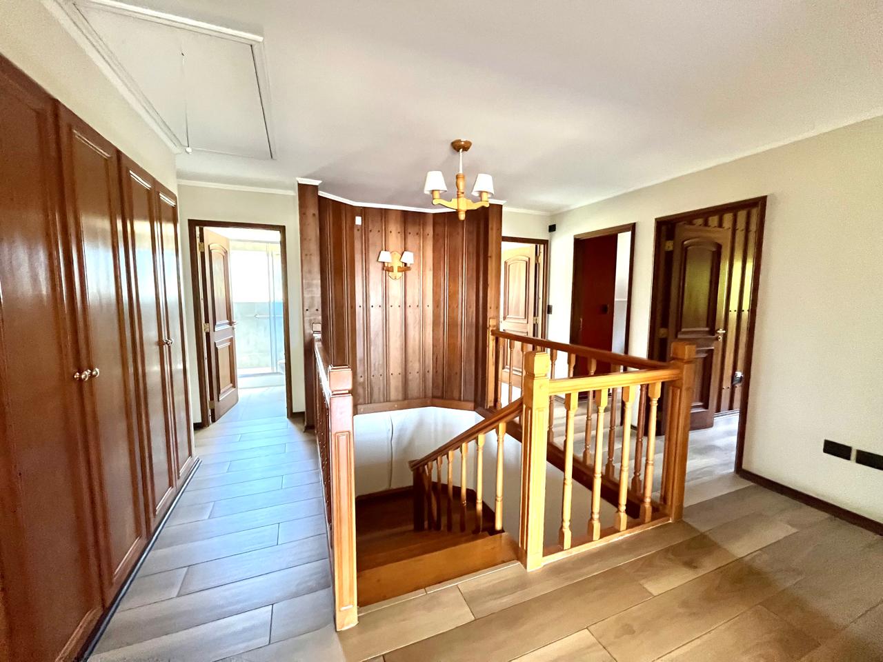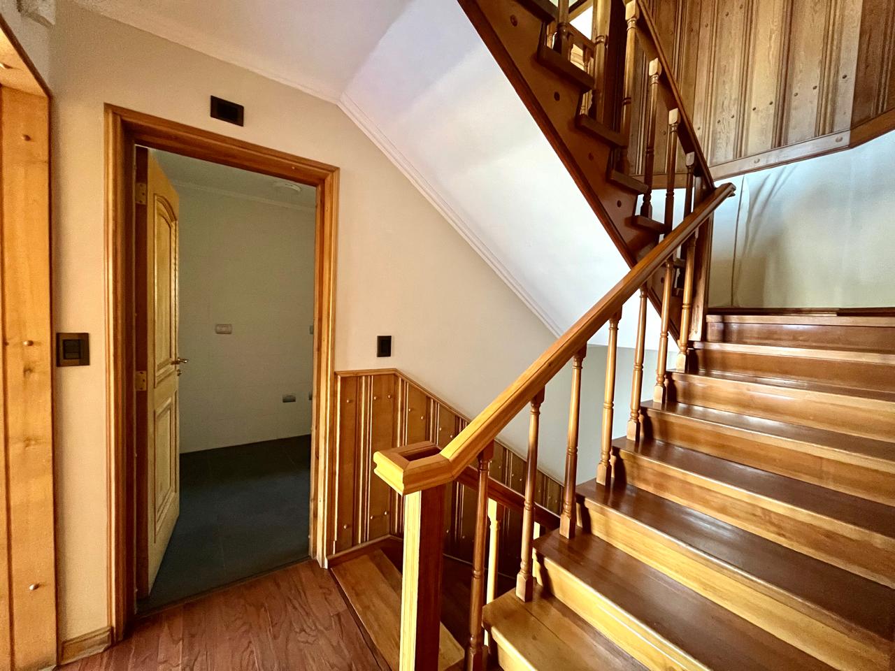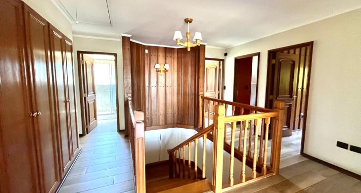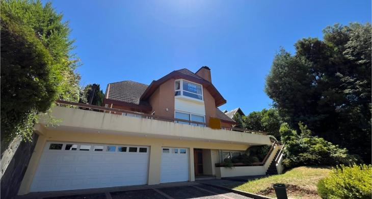 Esta imponente casa de 3 pisos destaca por su diseño funcional y acabados en madera nativa. Construida en el año 2002, ofrece 392 m² construidos sobre un terreno de 917 m², proporcionando un espacio generoso para cada miembro de la familia. La distribución contempla: hall de acceso y gran sala para reuniones familiares con parrilla y bar. Segundo piso con luminoso living con chimenea y amplio comedor con acceso a espaciosa cocina con comedor de diario. Cuenta con 5 amplios dormitorios, incluyendo una lujosa suite principal con walking closet y acceso a balcón, 6 baños. En el tercer piso amplia y luminosa sala de estar. Zona de lavandería y caldera de petróleo o leña y que distribuye calefacción a toda la propiedad. Generoso patio interior con hermosa piscina y zona de ducha/vestidor. Gran bodega y sistema de riego automático. Disfruta de la comodidad de tener 3 estacionamientos disponibles en cochera totalmente cerrada y hermoso antejardín.