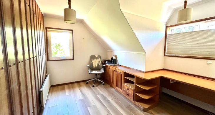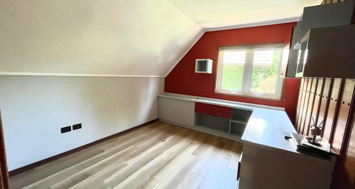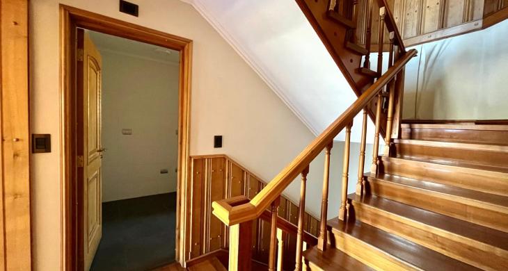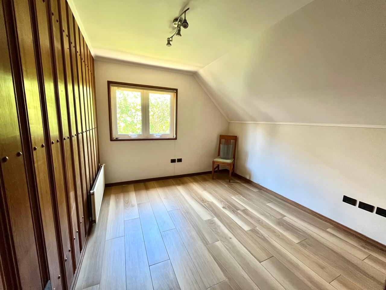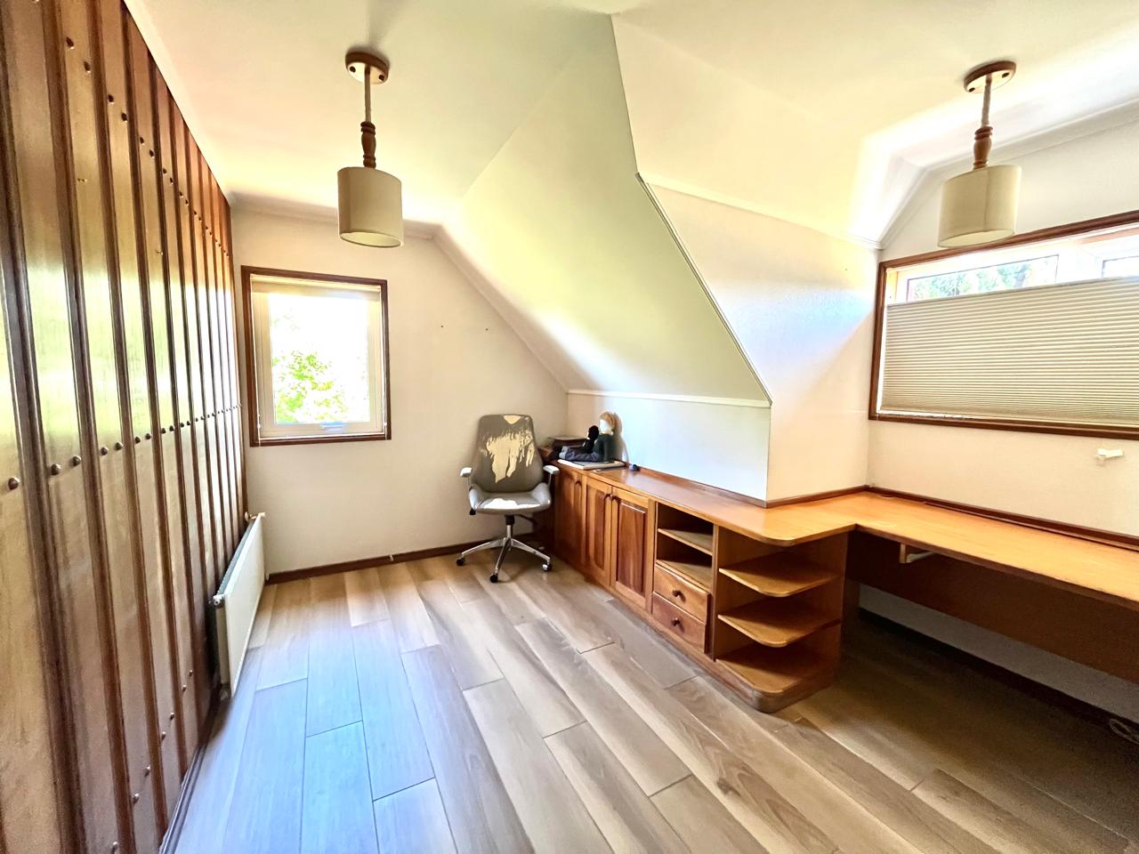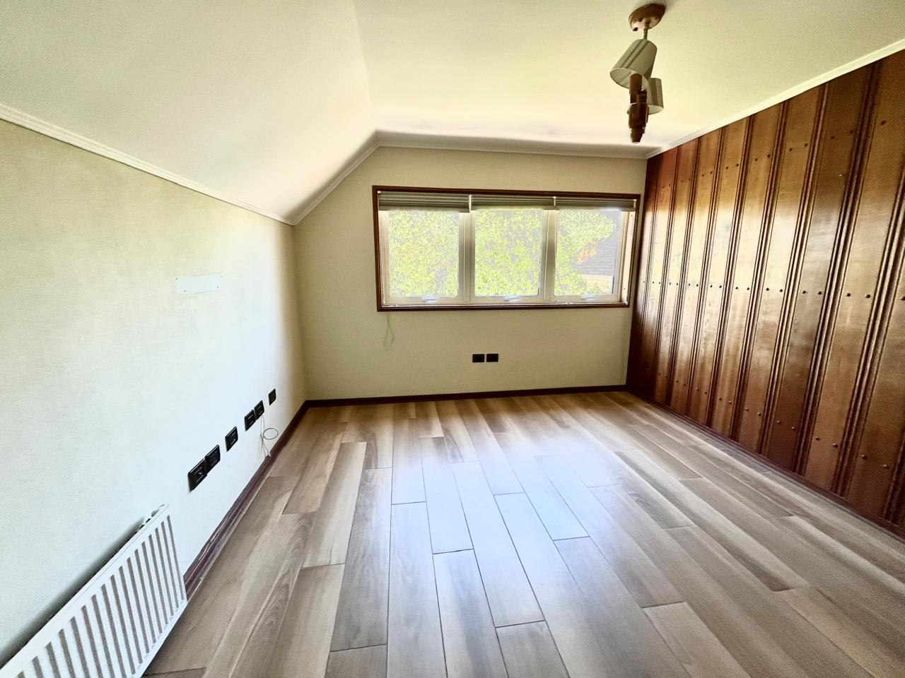 Esta imponente casa de 3 pisos destaca por su diseño funcional y acabados en madera nativa. Construida en el año 2002, ofrece 392 m² construidos sobre un terreno de 917 m², proporcionando un espacio generoso para cada miembro de la familia. La distribución contempla: hall de acceso y gran sala para reuniones familiares con parrilla y bar. Segundo piso con luminoso living con chimenea y amplio comedor con acceso a espaciosa cocina con comedor de diario. Cuenta con 5 amplios dormitorios, incluyendo una lujosa suite principal con walking closet y acceso a balcón, 6 baños. En el tercer piso amplia y luminosa sala de estar. Zona de lavandería y caldera de petróleo o leña y que distribuye calefacción a toda la propiedad. Generoso patio interior con hermosa piscina y zona de ducha/vestidor. Gran bodega y sistema de riego automático. Disfruta de la comodidad de tener 3 estacionamientos disponibles en cochera totalmente cerrada y hermoso antejardín.