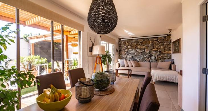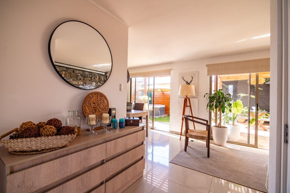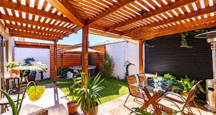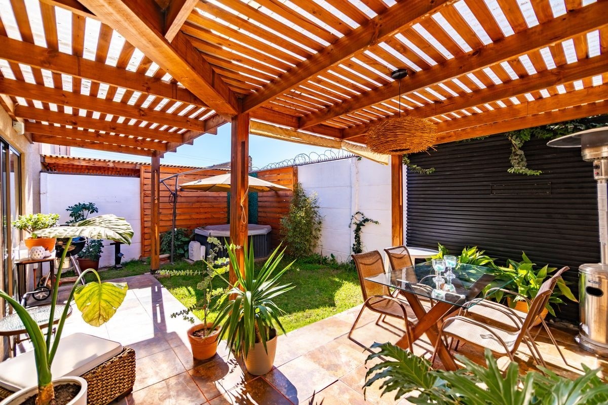 Propiedad de 80 m² construidos sobre un terreno de 146 m², edificada en 2015 y mantenida en excelente estado de conservación. Su diseño funcional contempla un amplio y luminoso living-comedor Con pisos Remodelados de Porcelanato ,Cortinas blackout ,con grandes ventanales, que otorgan conexión directa a una terraza techada con cobertizo de madera y grandes espacio para juego de terraza y comedor . Pérgola y jacuzzi, para disfrutar esos dias de descanso donde crea un espacio ideal para esparcimiento y reuniones.