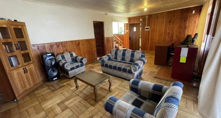 Excelente propiedad con antejardin y patio, conformada por una casa de dos pisos pareada por un lado y una cabaña adaptada para clases, taller.
