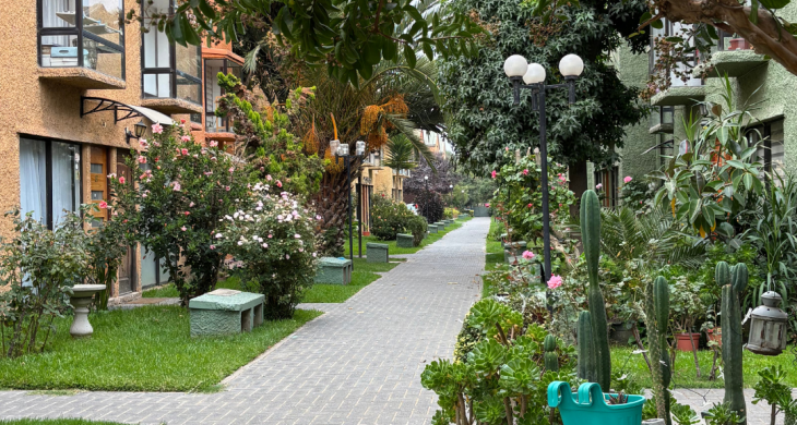 Condominio con seguridad 24/7, antejardines comunes bien cuidados y entorno residencial tranquilo.