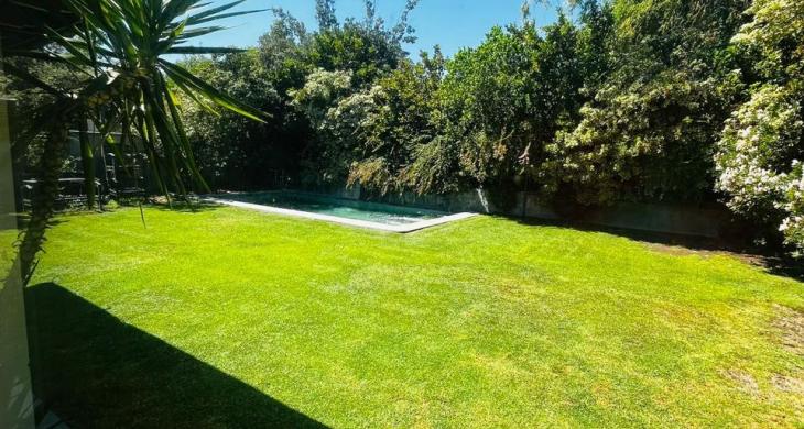 El terreno de 540 m² ofrece un jardín soñado, diseñado para el relajo y la entretención: