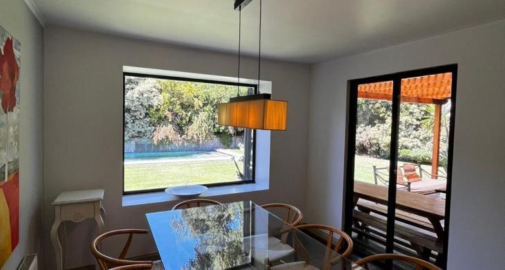 Descubre esta maravillosa propiedad estilo chilena de un piso, ideal para familias que buscan seguridad, comodidad y un entorno privilegiado. Ubicada en el exclusivo sector de Piedra Roja, Chicureo, esta casa destaca por su excelente distribución, su jardín consolidado y equipamiento pensado para el disfrute todo el año.