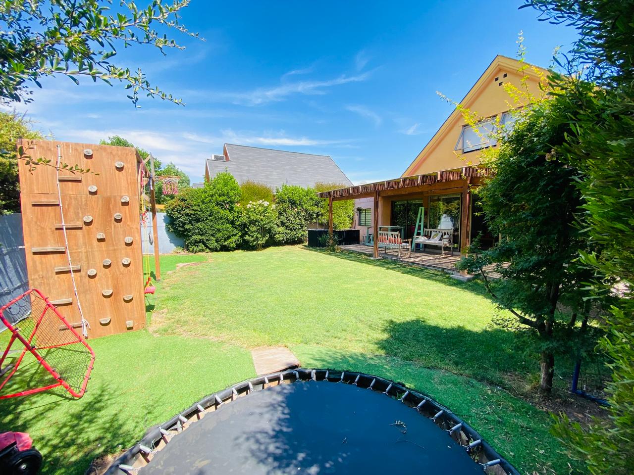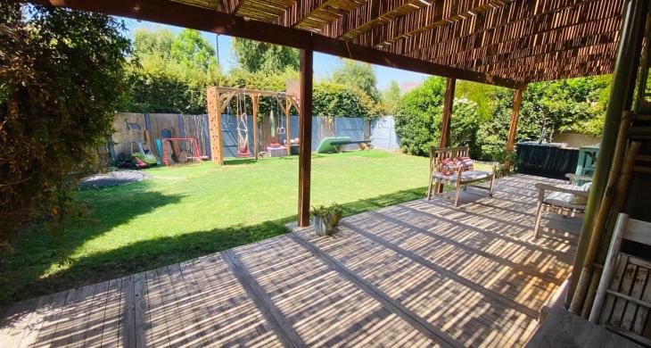 Descubre el equilibrio perfecto entre comodidad, estilo, naturaleza y cuidado del medio ambiente, en esta encantadora casa de 2 pisos en un amplio terreno, ubicada en un barrio organizado con portón eléctrico y televigilancia, con plaza con juegos de niños y áreas verdes. Ideal para familias que buscan tranquilidad y un entorno natural, sin alejarse de la ciudad, rodeada de colegios de prestigio como Colegio Highlands y Cabo de Hornos, entre otros, y con todo lo que necesitas a solo minutos: Strip Center, supermercados, servicios, comisaría y conectividad directa a Santiago.