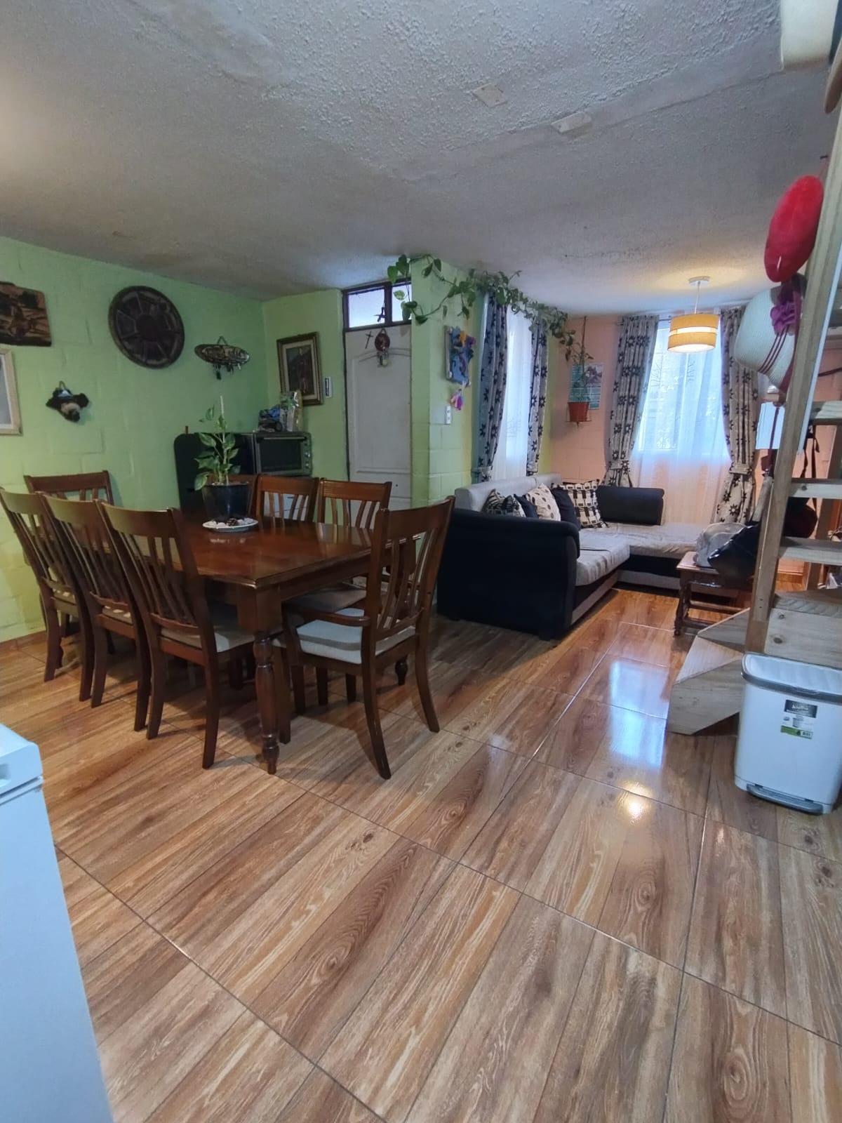 Esta propiedad tiene dos pisos: en el primero, se encuentra el antejardín, living, comedor, la cocina que se amplío de manera que este último espacio sea más grande y se conecte con el estacionamiento.