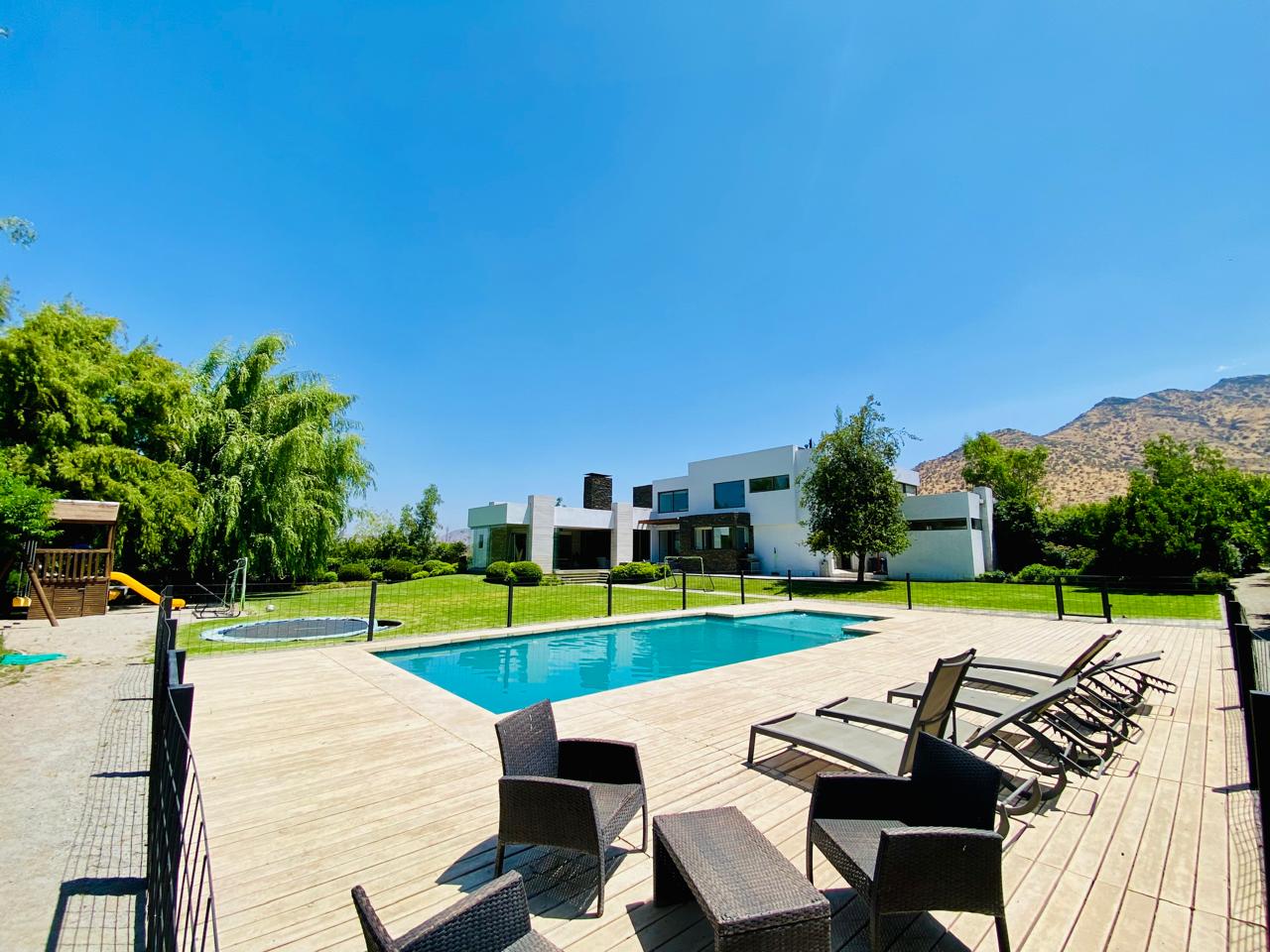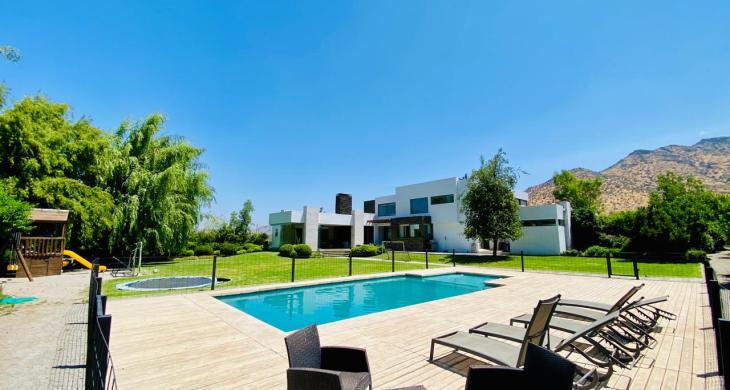 ¿Buscas una propiedad donde solo tengas que traer tus maletas? Esta espectacular casa mediterránea de 2 pisos cautiva por su imponente fachada, que combina la solidez de la piedra natural con volúmenes modernos y la calidez de un hogar perfectamente mantenido. Con 550 m² construidos sobre un terreno de 5.000 m², con un jardín diseñado para todas las edades. se sitúa como una de las propiedades de lujo más funcionales y mejor pensadas de Las Brisas de Chicureo. Cada metro cuadrado fue diseñado con un propósito: facilitar la convivencia familiar y el disfrute máximo. Esta propiedad de lujo se entrega completamente amoblada y equipada, con un interiorismo de alto nivel que potencia la luz natural y las vistas despejadas hacia los cerros, y donde la cocina es el corazón de la vida diaria. En definitiva, un espacio de alta gama que se siente, por sobre todo, un verdadero hogar. Ubicada en el sector más exclusivo y seguro de Chicureo, con acceso rápido a los mejores servicios y colegios de la zona.