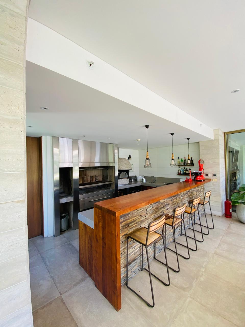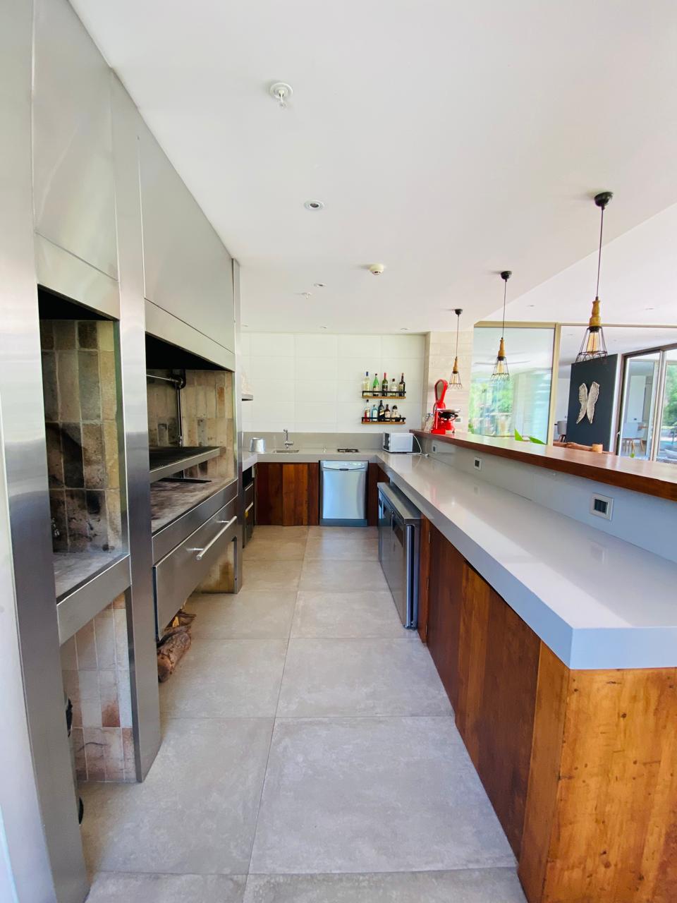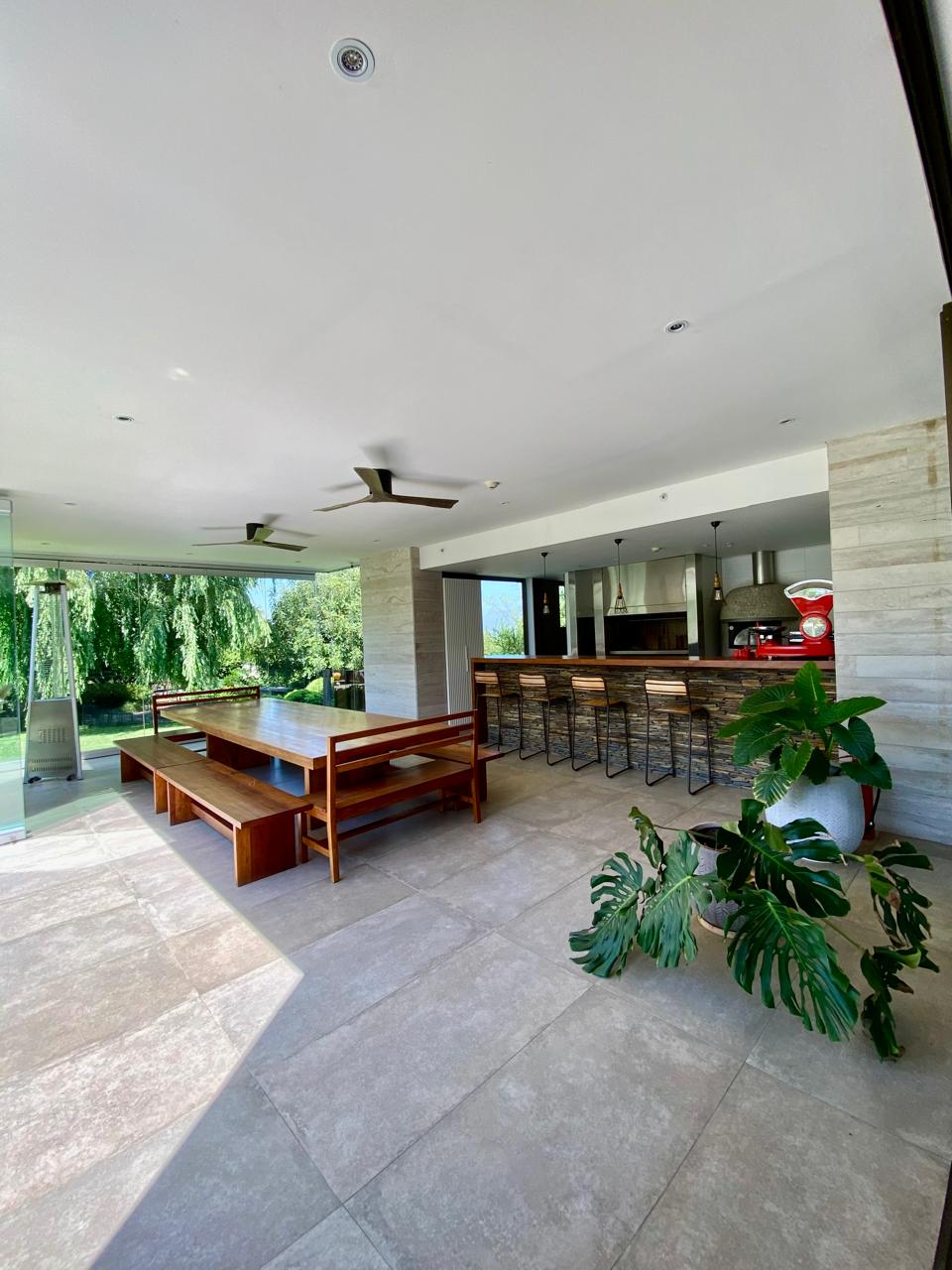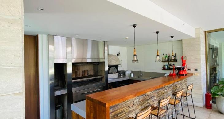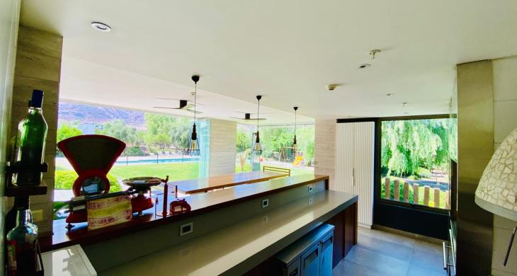 Sorprende a tus invitados con una Cava Subterránea temperada, y disfruta del Quincho Profesional de nivel gastronómico, totalmente equipado con una parrilla de acero inoxidable de gran formato, un gran horno profesional de piedra, mesones en granito, lavamanos, lavavajillas y un bar en madera, con una vista al jardín inmejorable, todo esto en una espectacular terraza techada climatizada con 2 ventiladores.