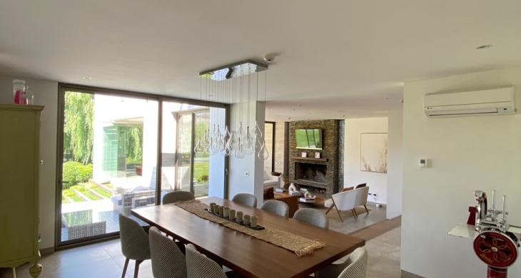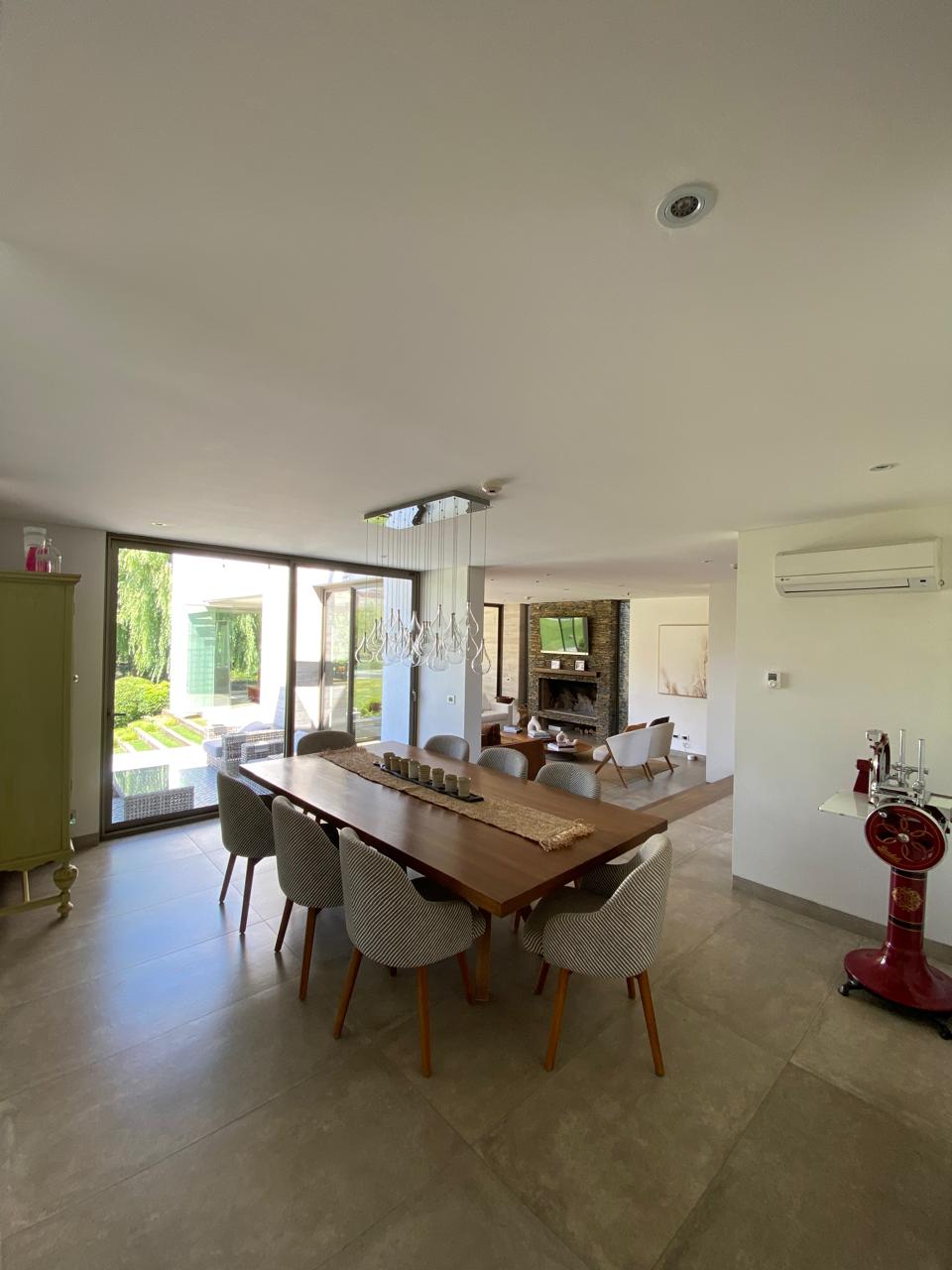 Climatización: 7 unidades de Aire Acondicionado distribuidas en dormitorios, cocina y family room. Y Calefacción por Losa Radiante con caldera independiente. Ventanas termopanel.