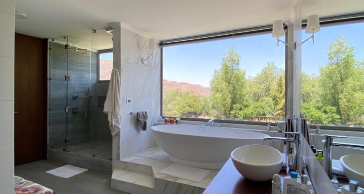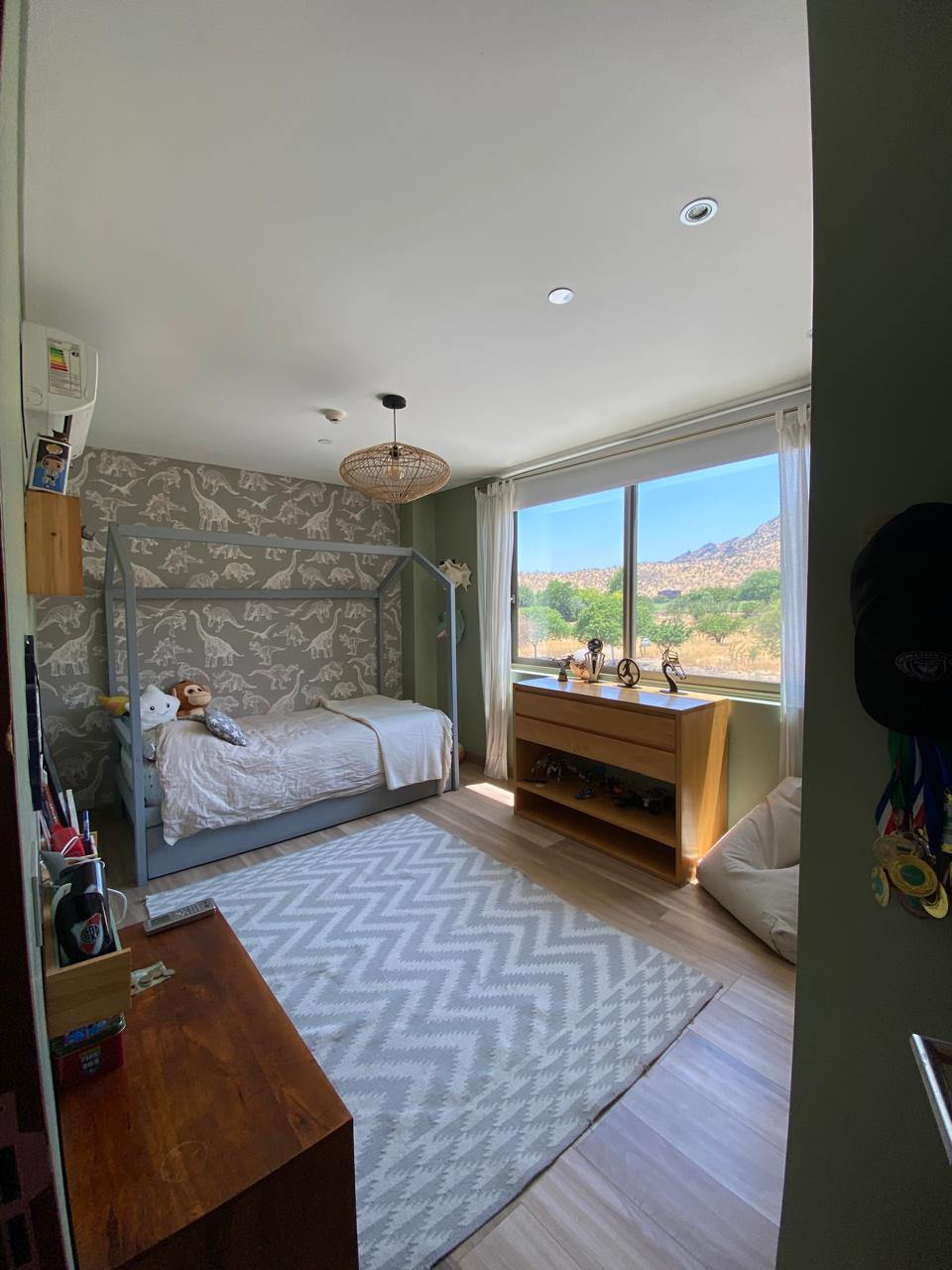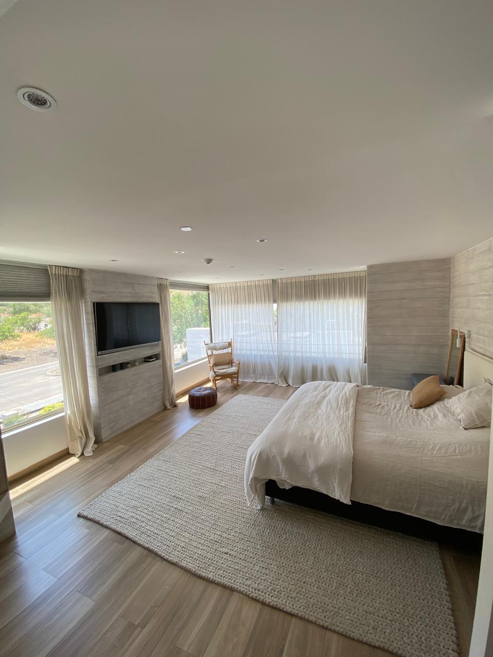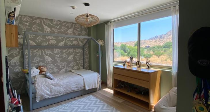 Un espacio de dimensiones generosas, que cuenta con una chimenea integrada, aire acondicionado y grandes ventanales para que despiertes con una vista cinematográfica a los cerros desde tu cama.