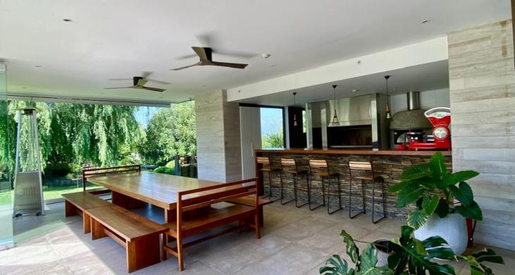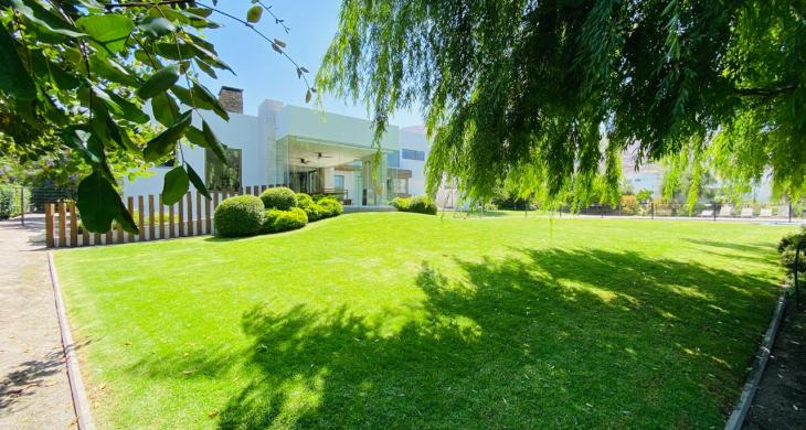 Además, de una espectacular terraza con pérgola de madera de grandes vigas y pisos decorativos, que conecta el comedor con un jardín impecable.