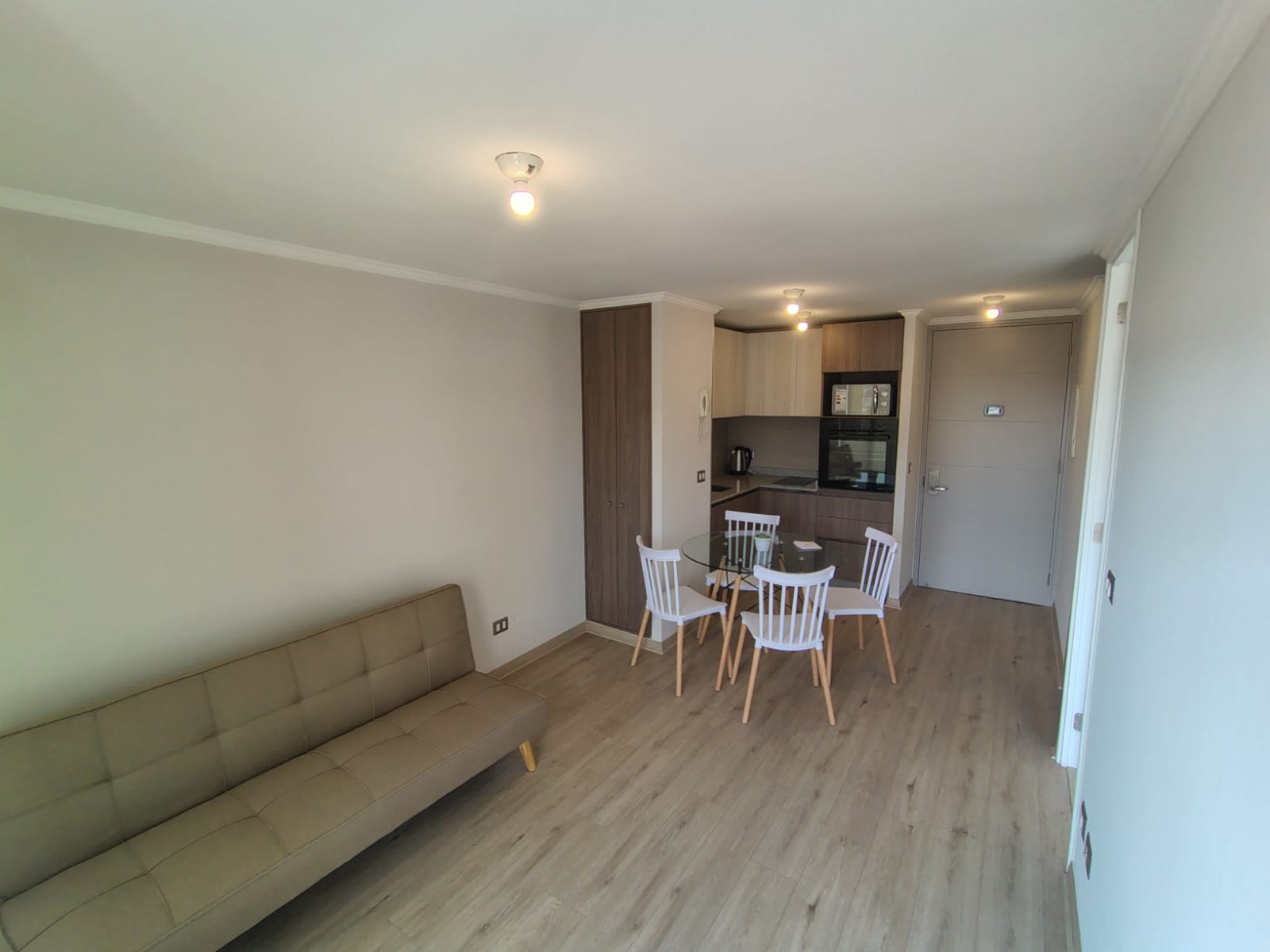 - Living con un futon y linda mesa de 4 puestos.