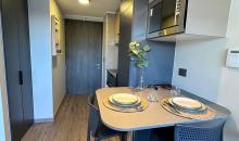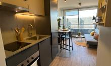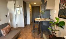 Kallpa Propiedades arrienda departamentos de 2 dormitorios, 2 baños, cocina y living comedor en la comuna de Providencia. El lugar tiene encimera y horno, refrigerador, cortinas roller. Cuenta con conexión a lavadora y lavandería dentro del condominio.