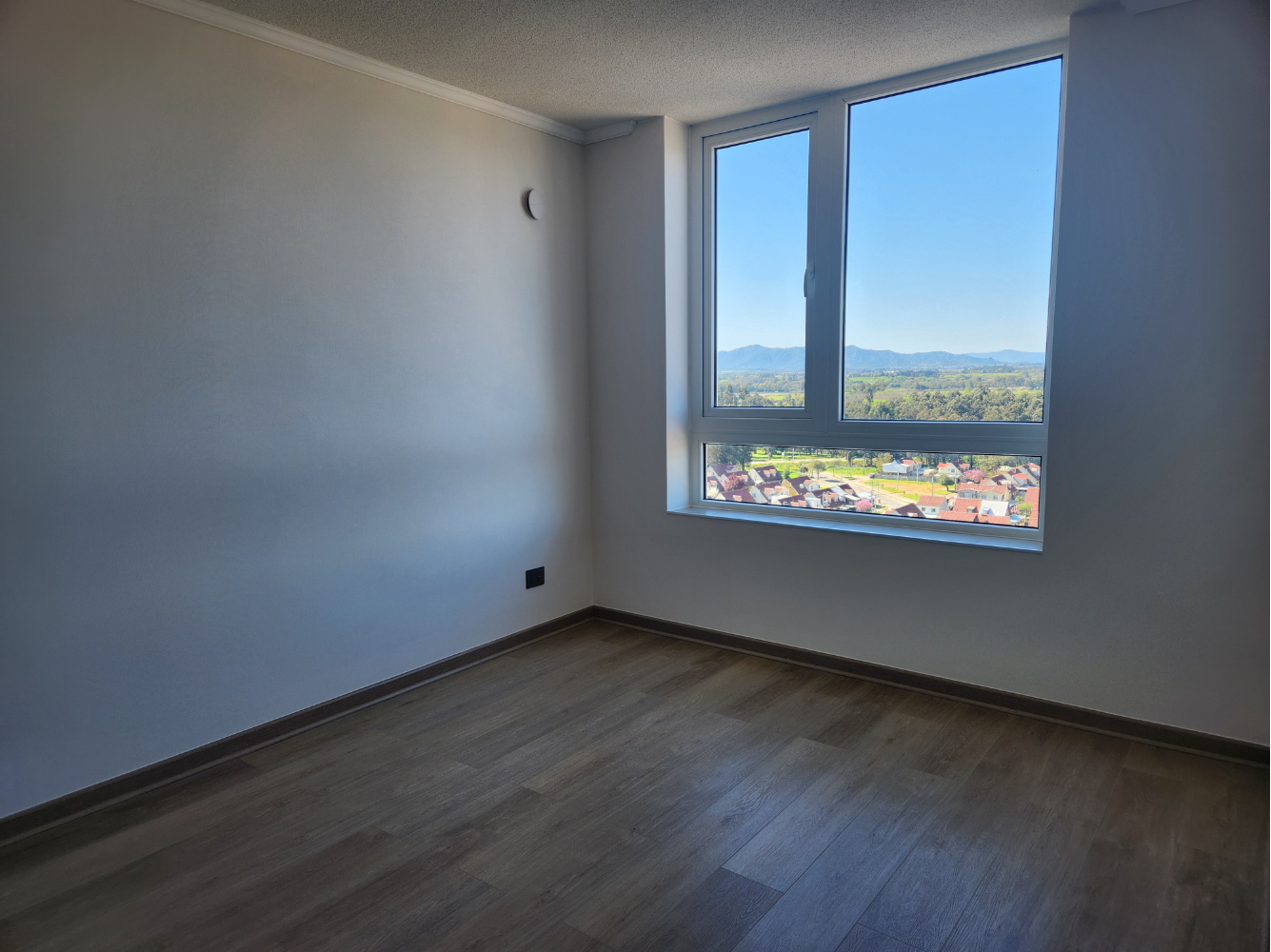 Ubicado en el piso 14, este departamento ofrece luminosidad y una vista hacia norte y hacia la misma Universidad de Talca.