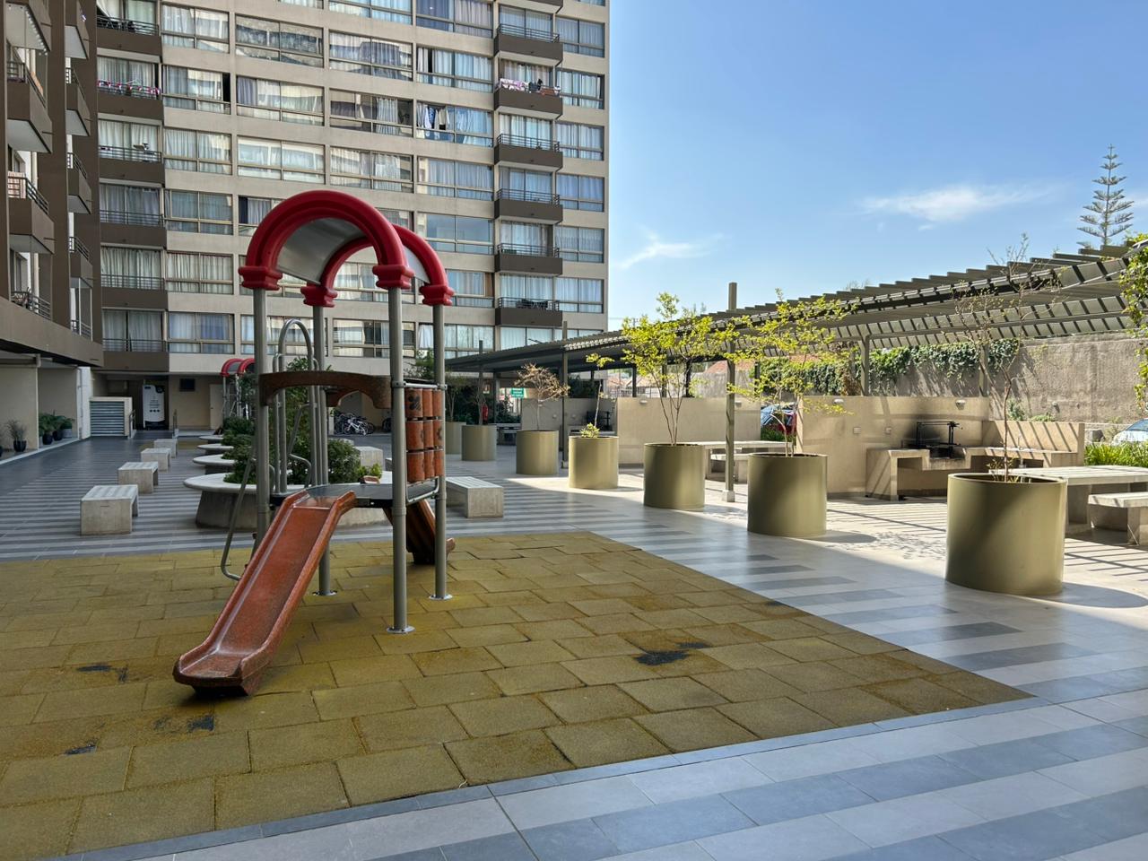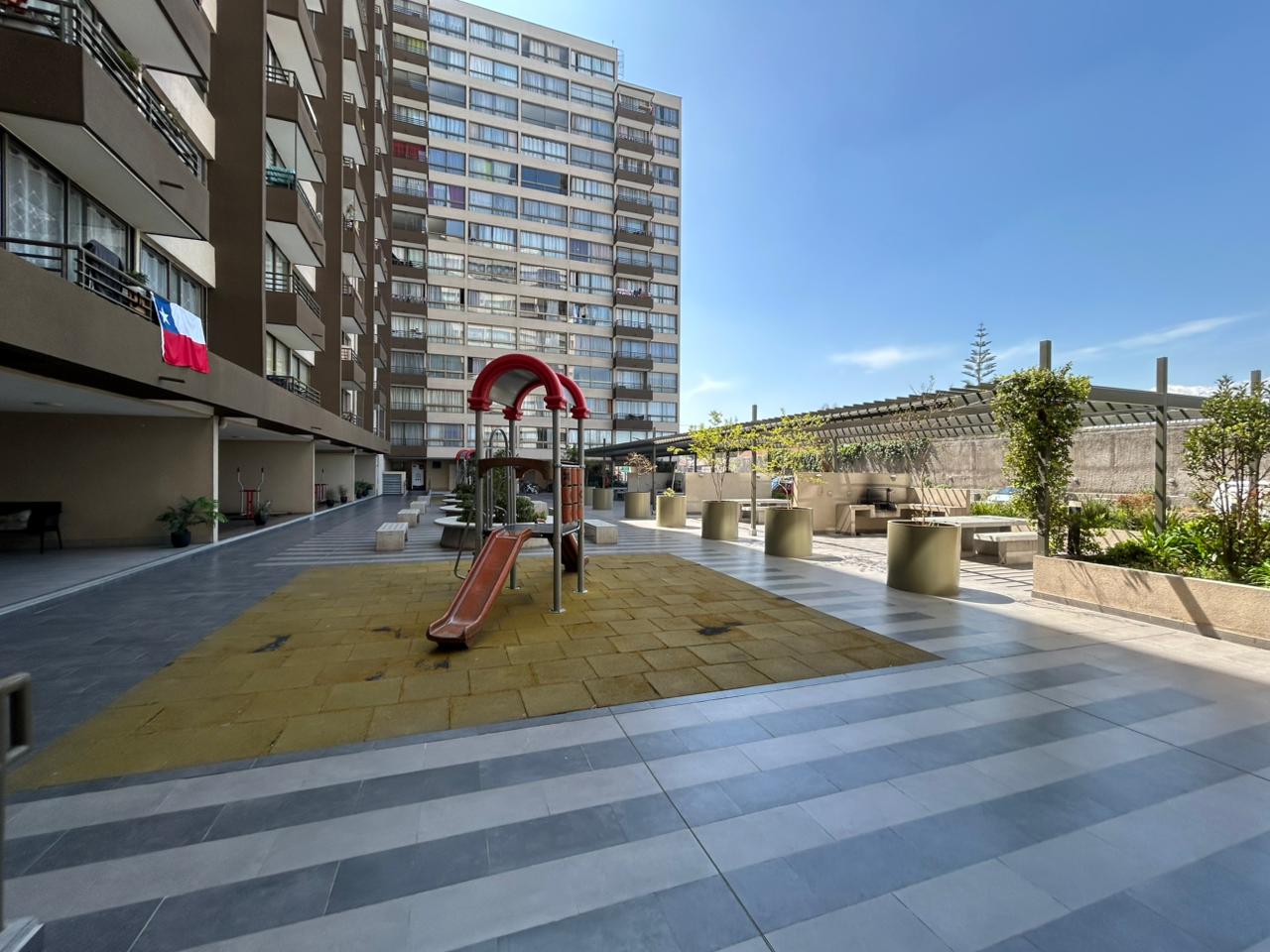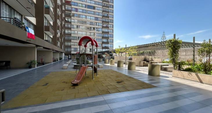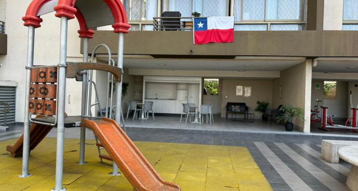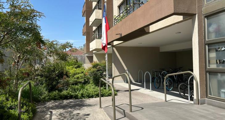 Se arrienda Depto. de 1D1B con Bodega y Malla de seguridad en Balcón, ubicado en piso 4. Orientación Poniente.