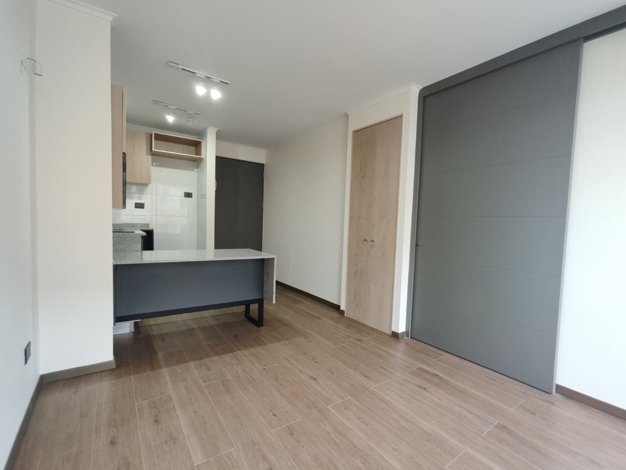 Departamento cuenta con cortinas, focos, soporte para Tv, balcón amplio, microondas y conexión a lavadora.