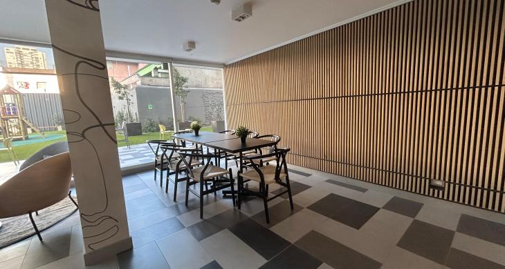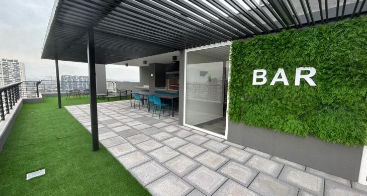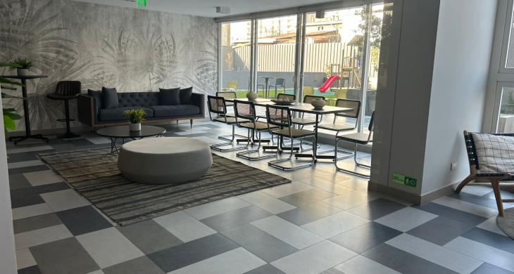 Edificio cuenta con áreas comunes como seguridad 24/7, quinchos, salones, Cowork, GyM, lavandería, juegos para niños, áreas verdes, estacionamiento de visitas, cercano a comercios, clínicas, locomoción colectiva entre otras