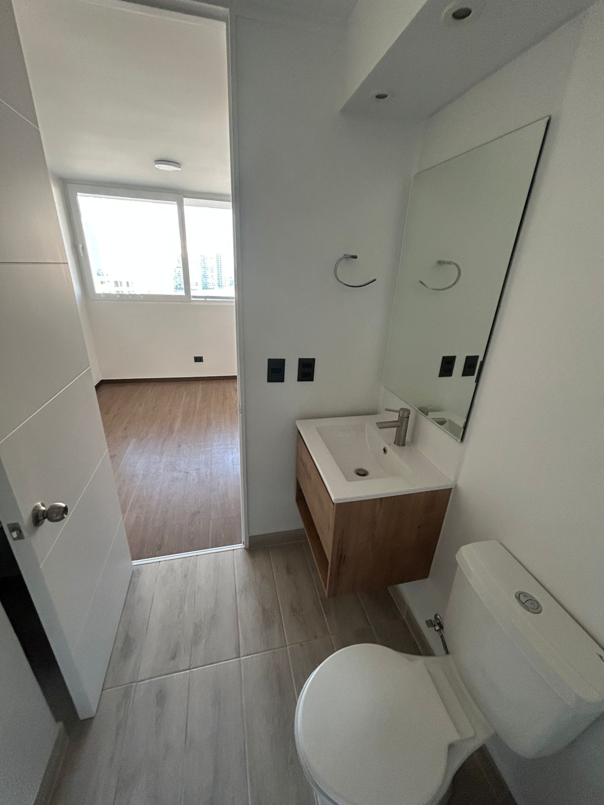 Departamento cuenta con cortinas, focos, soporte para Tv, balcón amplio, conexión a lavadora.