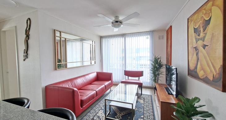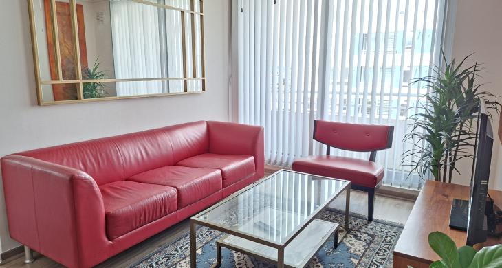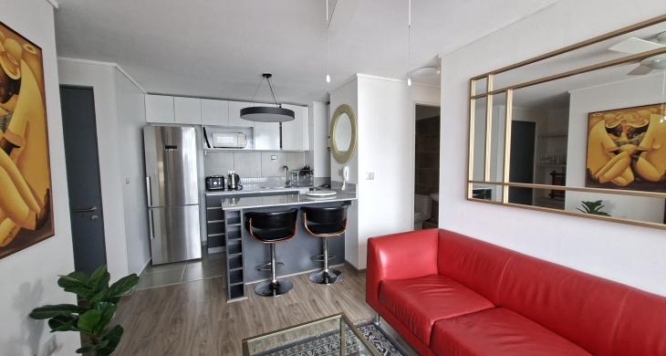 Se Arrienda lindo y amplio Departamento amoblado de 2 dormitorios, principal en suite, 2 baños y 1 escritorio.