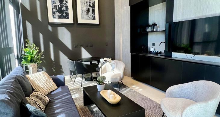 Uno de los mayores atributos de este departamento es su condición de semiamoblado, lo que facilita una mudanza inmediata y reduce significativamente la inversión inicial en equipamiento. Incluye cocina, campana, hornomicroondas, lavadora, refrigerador, lámparas y cortinas rollers.