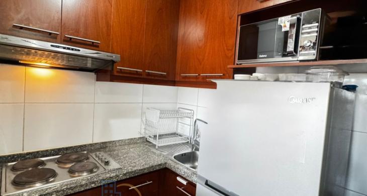 Este acogedor departamento de 34 m² construidos, ubicado en el piso 12, cuenta una vista panorámica increíble, 1 dormitorio en suite, 1 baño, ideal para solteros o parejas. Disfrute de una cocina amoblada y equipada, con encimera eléctrica de 4 platos, horno empotrado eléctrico, campana, un luminoso espacio habitable y una terraza de 4 m² perfecta para relajarse y disfrutar del entorno. Además, incluye 1 estacionamiento y 1 bodega, ofreciendo soluciones de almacenamiento convenientes.