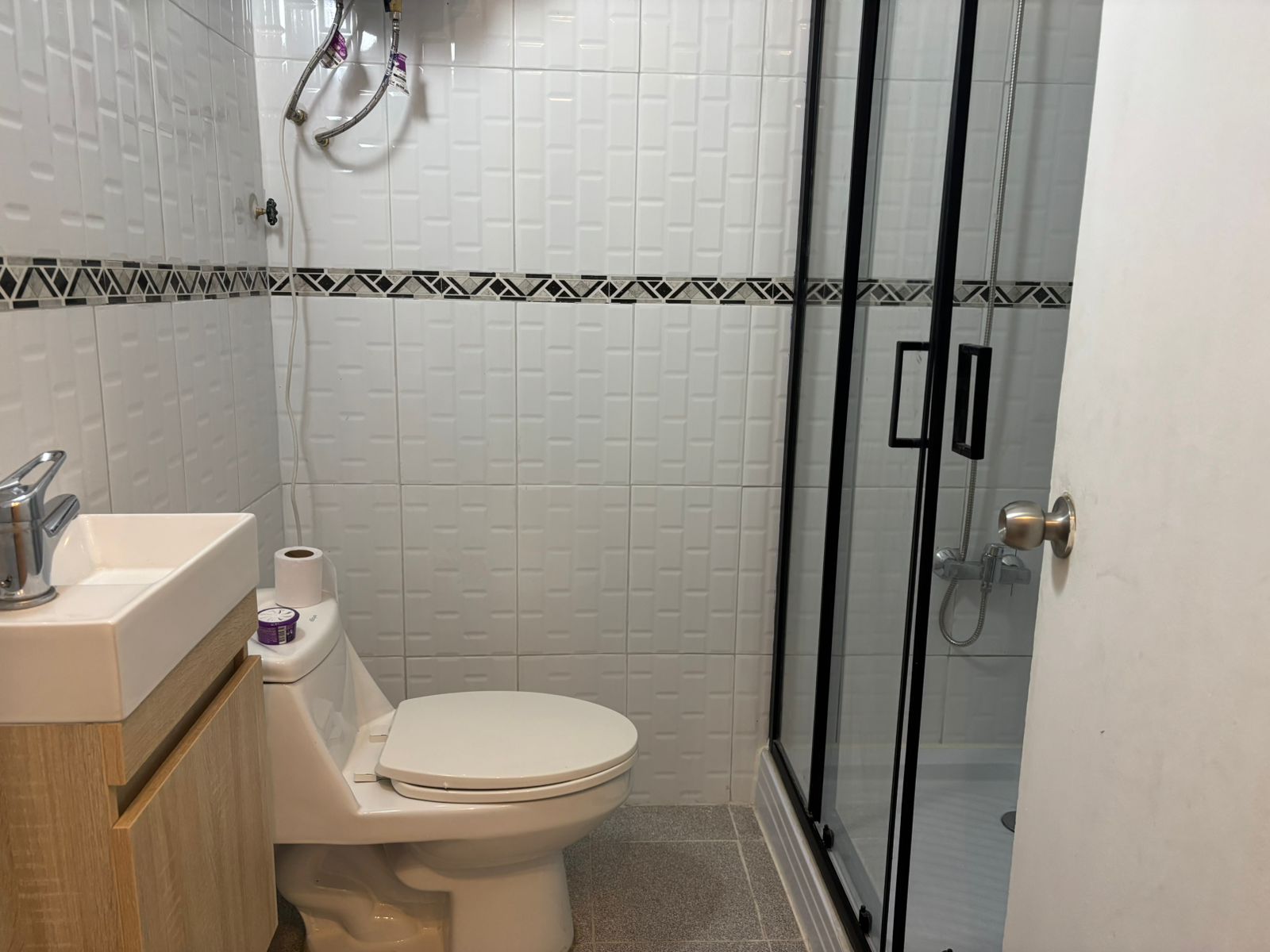 1 baño completo con ducha y shower door, termo eléctrico, además de conexión a lavadora.
