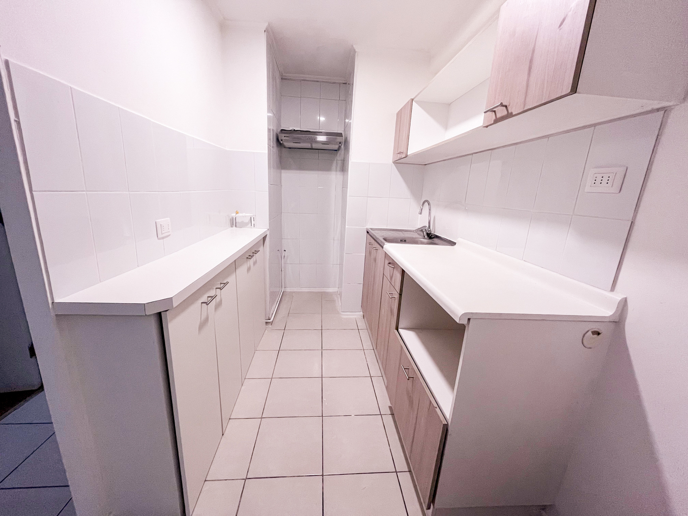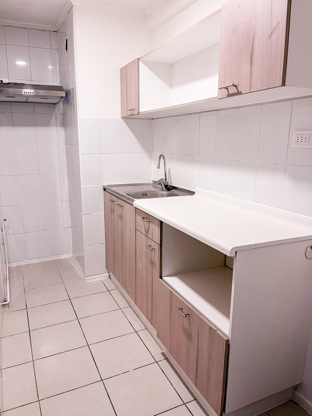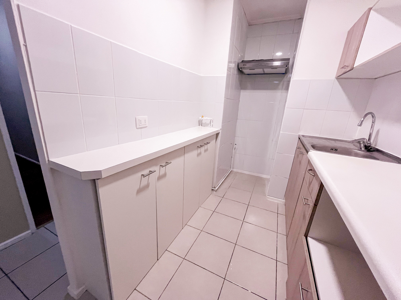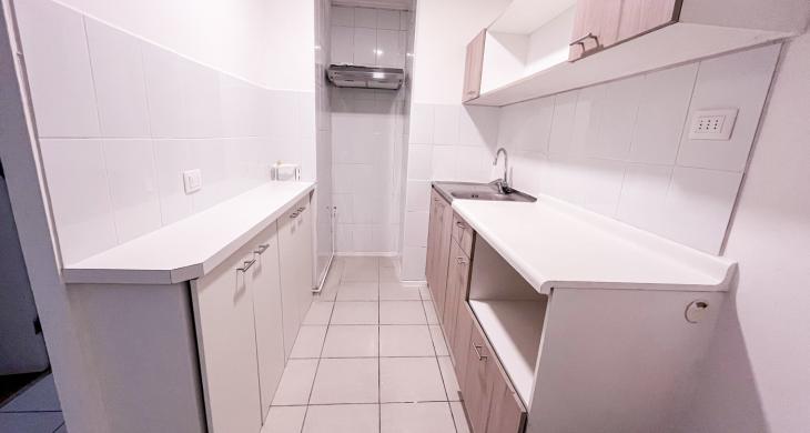 Actualmente el departamento cuenta con campana en la cocina y cerámica por las paredes de ésta para hacer más fácil la limpieza. Además se incorporó un mueble en el mesón de la cocina para tener más espacio donde guardar mercadería o lo que se estime necesario. También se instalaron rieles con focos en el living comedor.