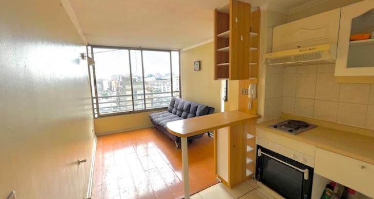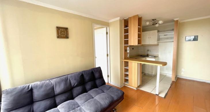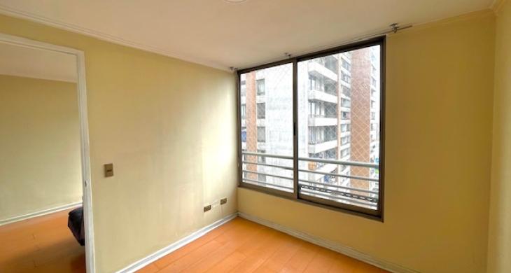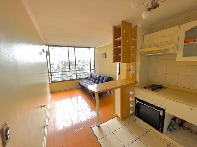 Acogedor departamento a pasos de estación de metro Santa Lucía; 1 dormitorio, walking closet, 1 baño, cocina americana con encimera y horno eléctrico. Se encuentra en condominio con seguridad las 24hrs, sala de eventos y lavandería. Unicación insuperable a pasos de estación de metro Santa Lucía, parque cerro Santa Lucía, centros de salud, colegios, barrio Lastarria, centros de educación superior, comercios y teatro municipal; muy buen estado de la propiedad, disponibilidad inmediata.