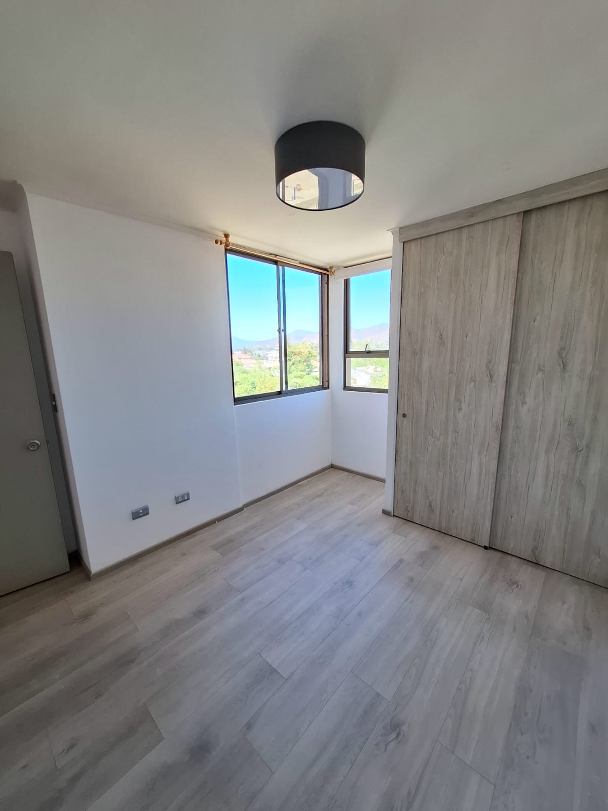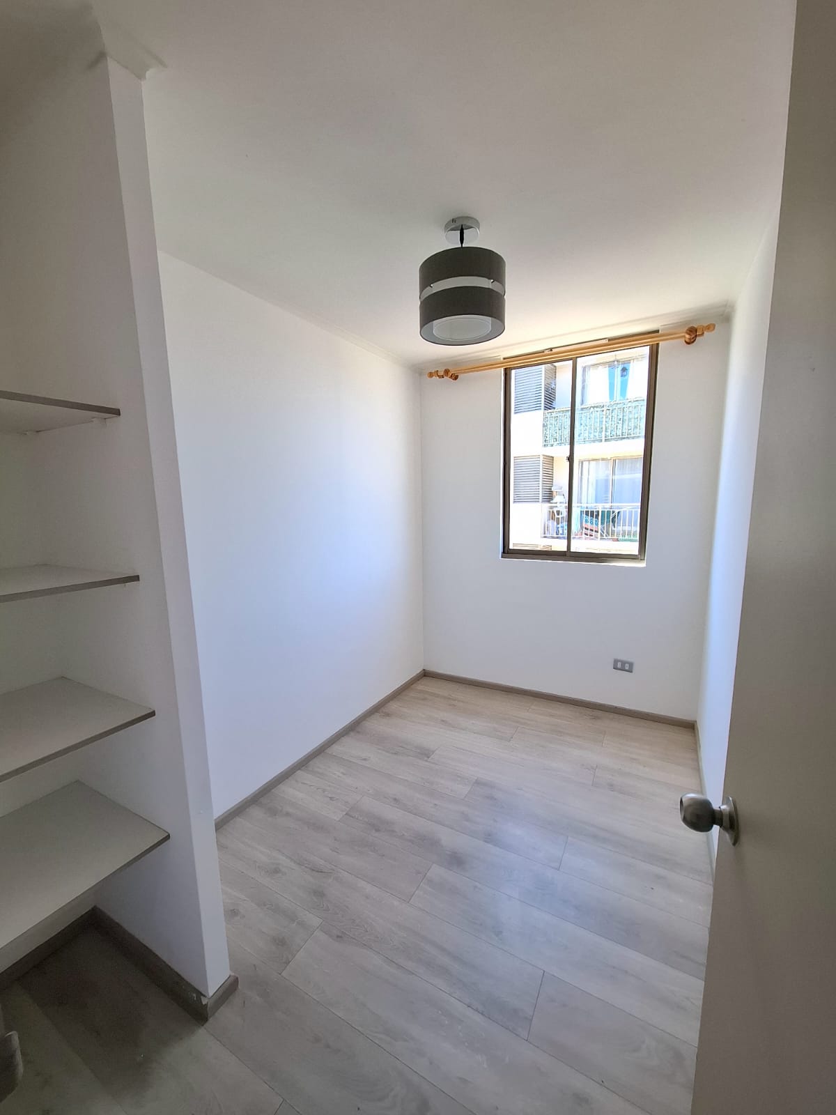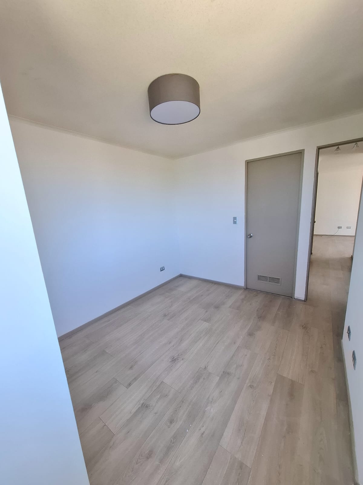 Piso flotante en todo el departamento, cerámico en baños y cocina.