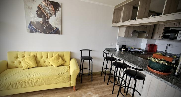 La propiedad cuenta con 2 amplias habitaciones, destacando el dormitorio principal con walk-in closet, y 2 baños completos. Su distribución incluye una moderna cocina americana, integrada a un luminoso living comedor, con salida directa a un balcón ideal para disfrutar del entorno costero y los atardeceres. Incluye estacionamiento y bodega, aportando comodidad y espacio adicional de almacenamiento.