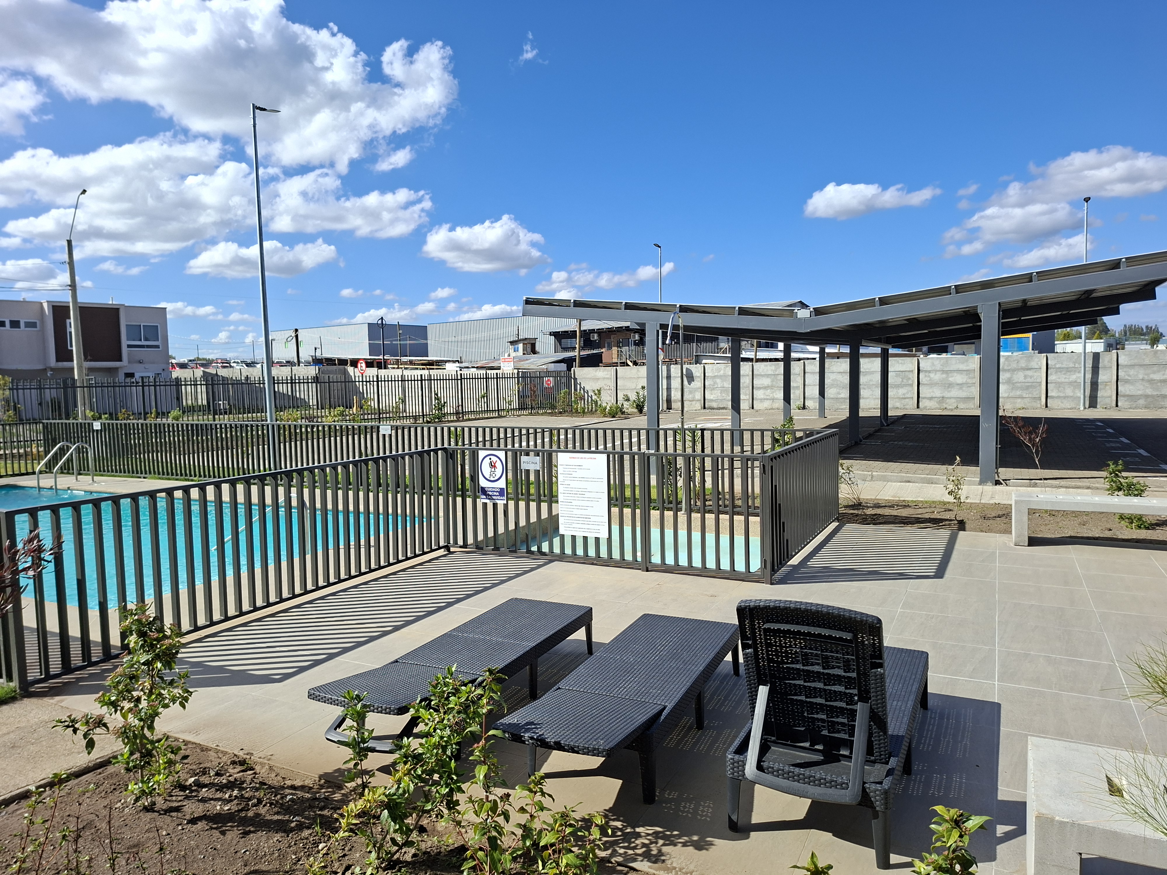 sistema de seguridad, cámaras, estacionamiento. piscina y zona de quinchos.