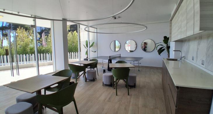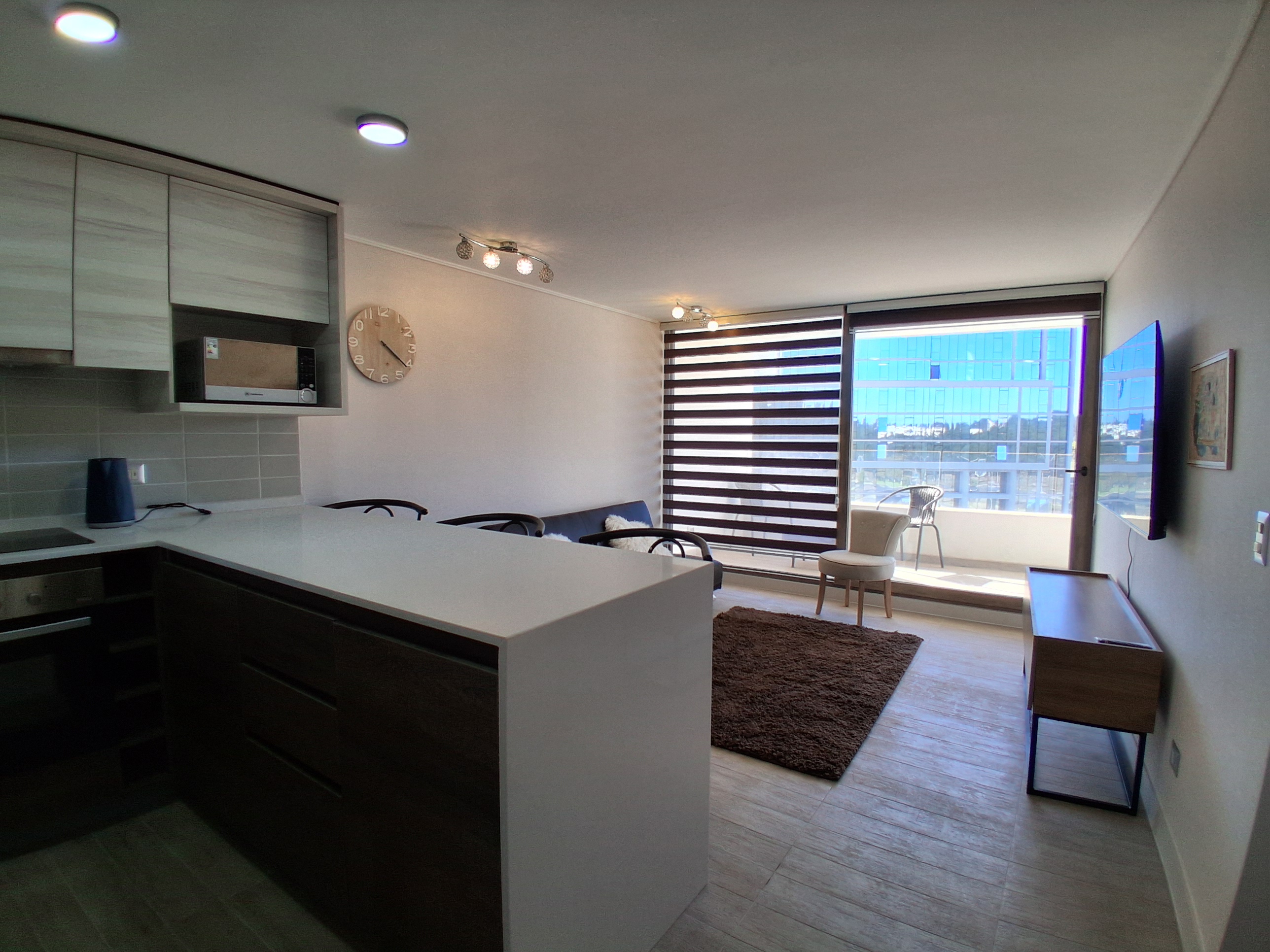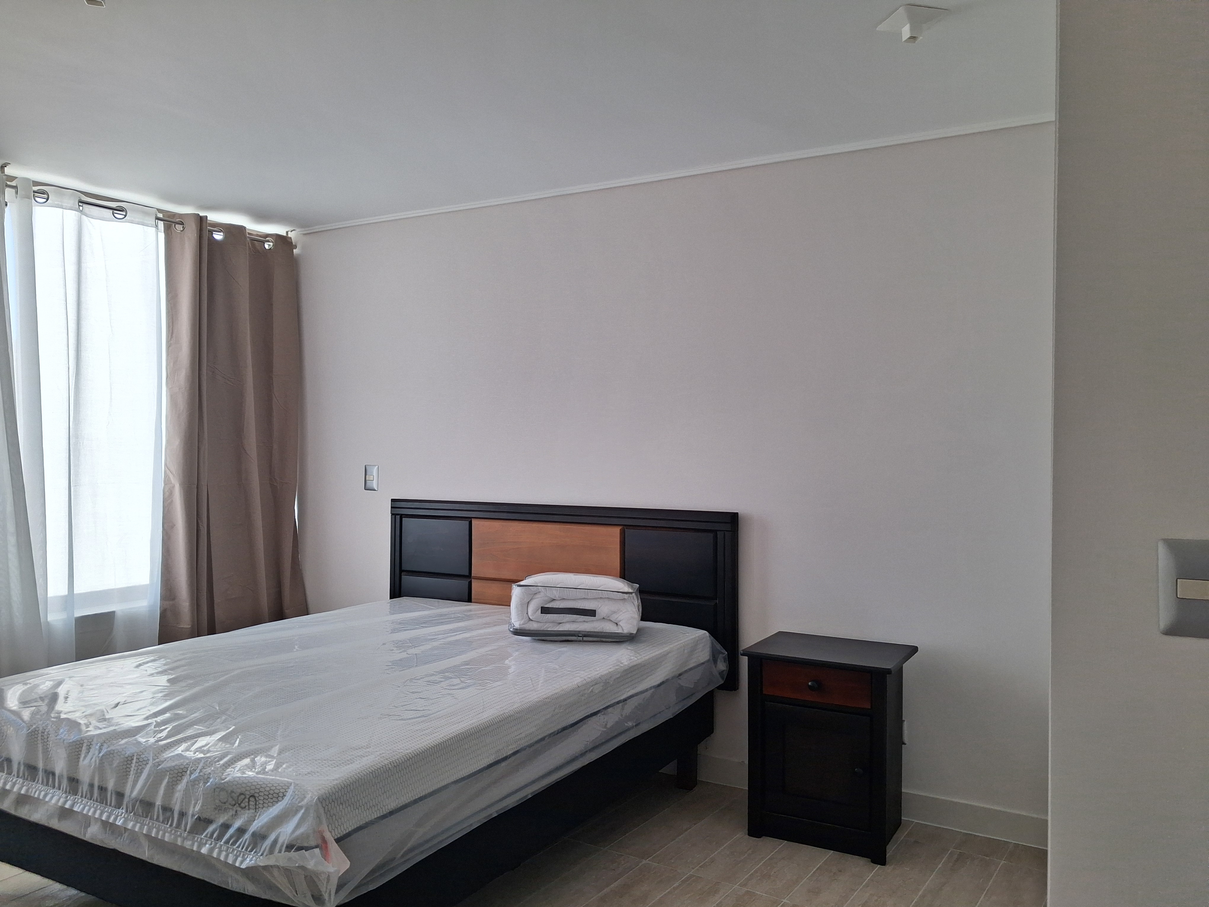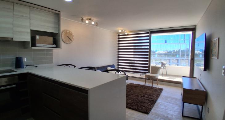 Se arrienda departamento Modelo A, totalmente nuevo y amoblado, en el prestigioso edificio Plaza Los Pinos. Ubicado en el piso 8, esta unidad destaca por su vista panorámica despejada y una distribución que privilegia la amplitud y la luz natural.