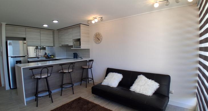 2 Dormitorios y 2 Baños: Equipamiento full de alta calidad. Camas, living-comedor y cocina 100% equipada (encimera, horno, campana).