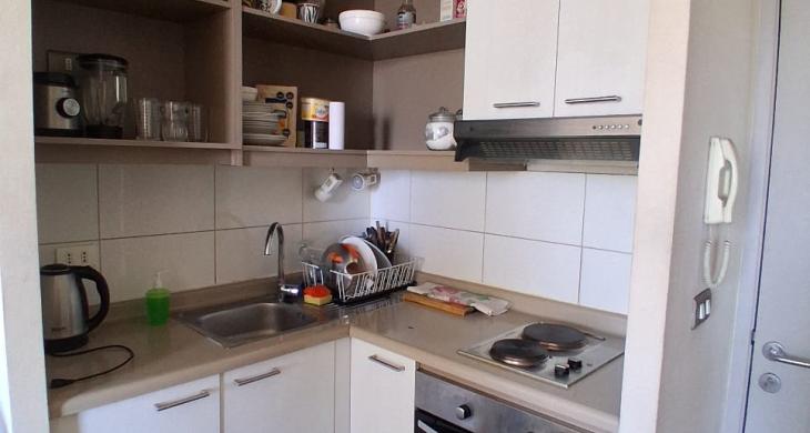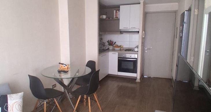 Consta de living comedor con salida a terraza, cocina americana amoblada y equipada con horno y encimera eléctrica de dos platos. Un dormitorio en suite con closet, baño completo con conexión para lavadora. Con calefont para agua caliente lo que mantiene bajos gastos comunes.