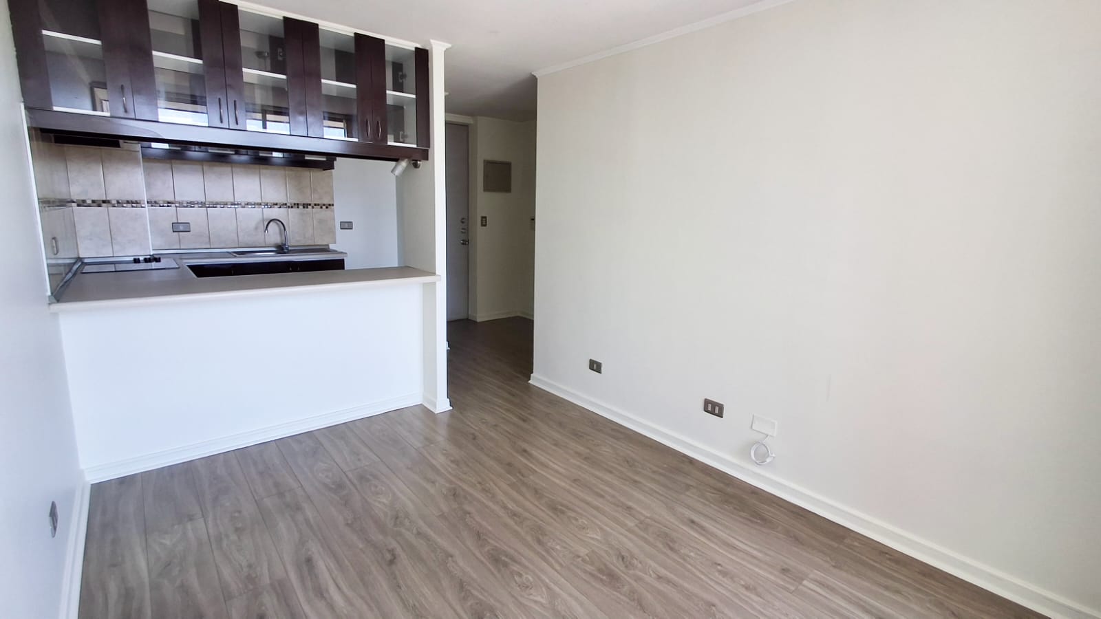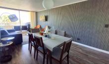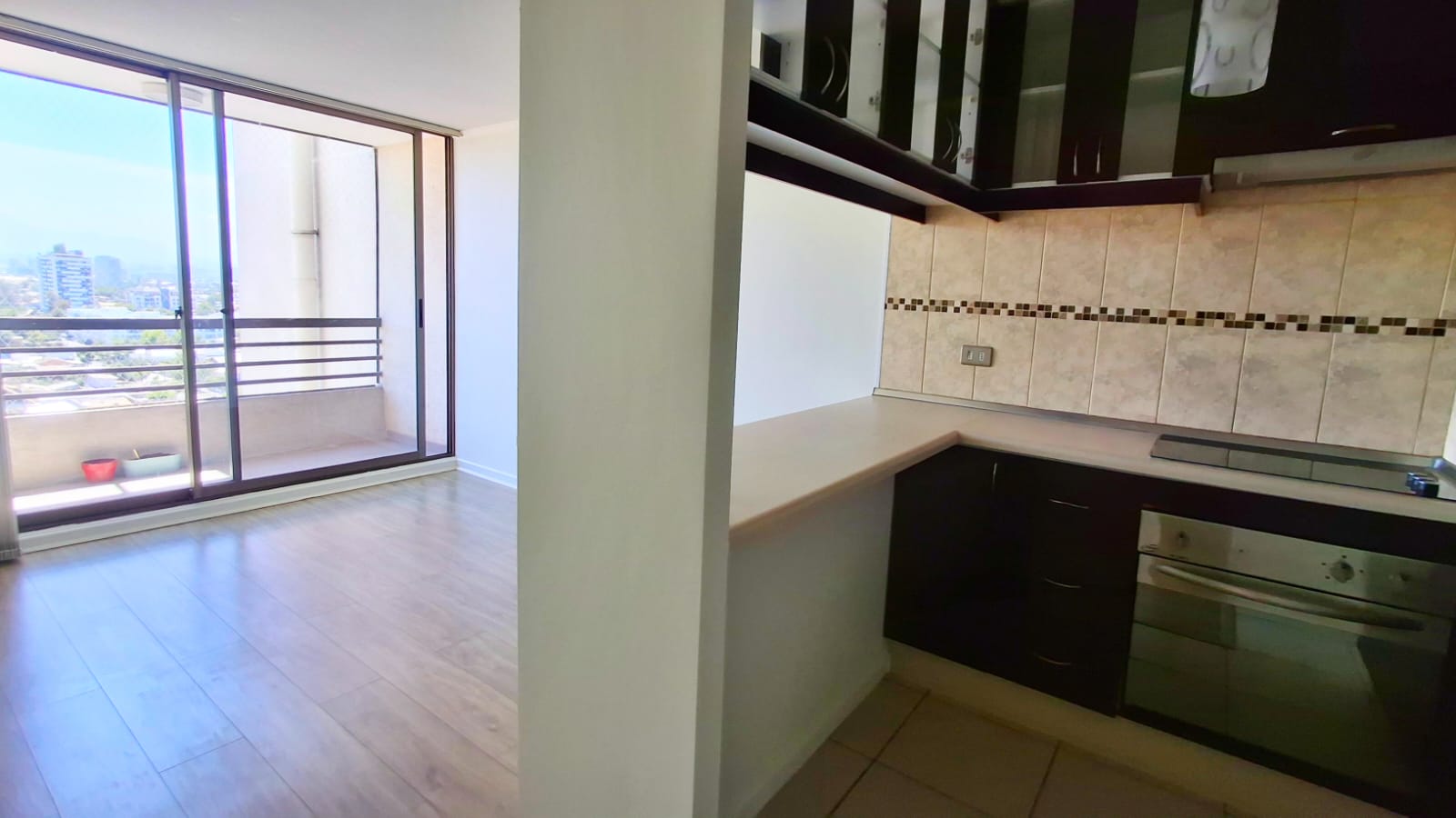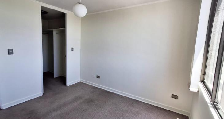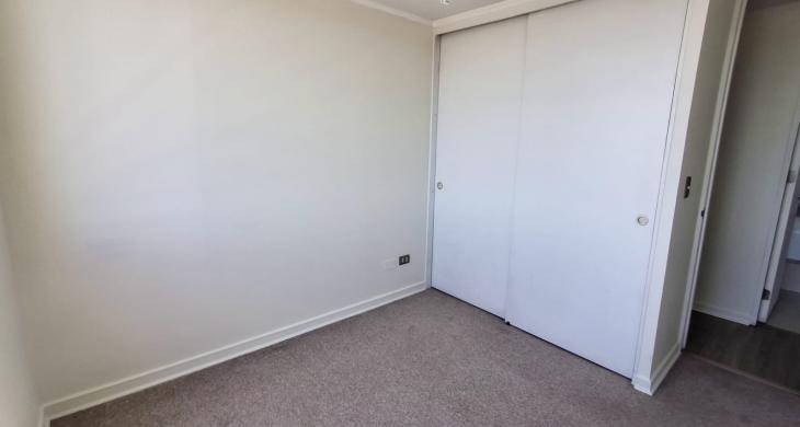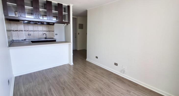 Departamento cuenta con 2 dormitorios, 1 baño, living comedor con buen espacio, terraza con vista despejada e iluminada por su altura en piso 12, cocina semi abierta integrada, piso flotante en living comedor, alfombras en dormitorios.