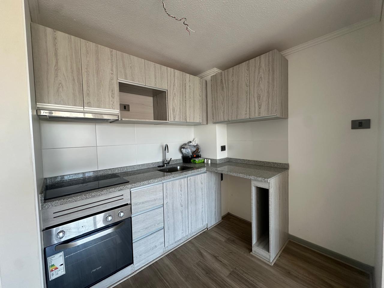 Cocina equipada: Cubierta de granito, encimera vitrocerámica, horno eléctrico y campana.