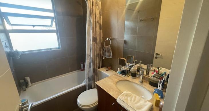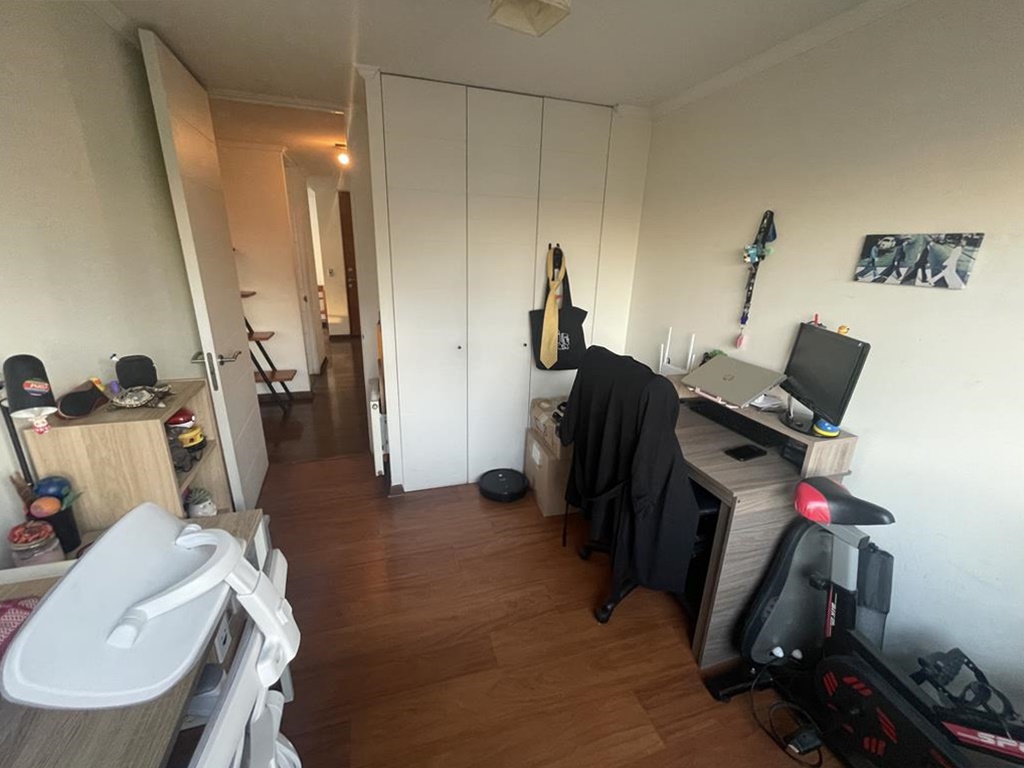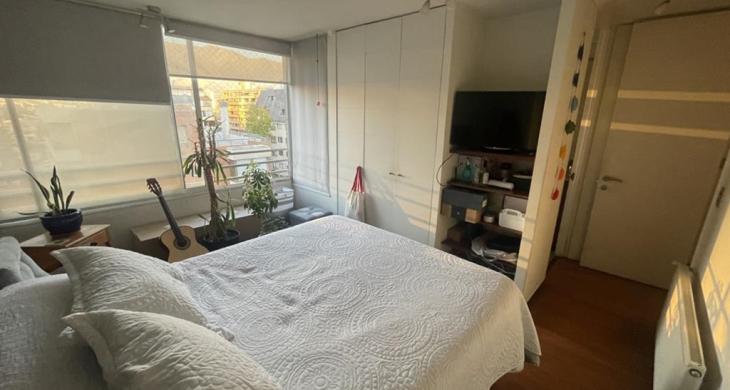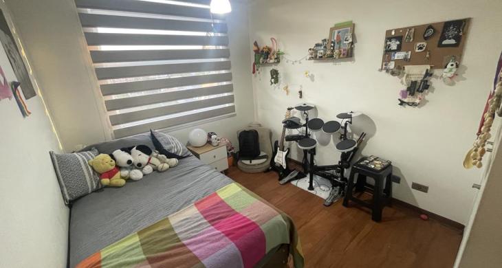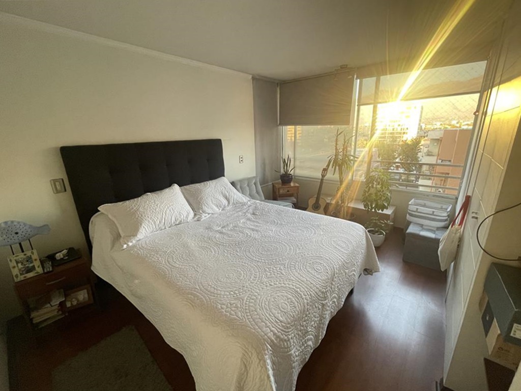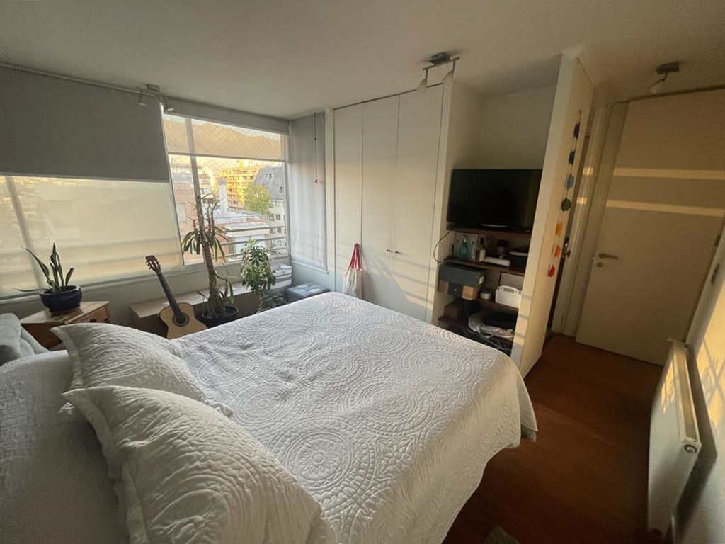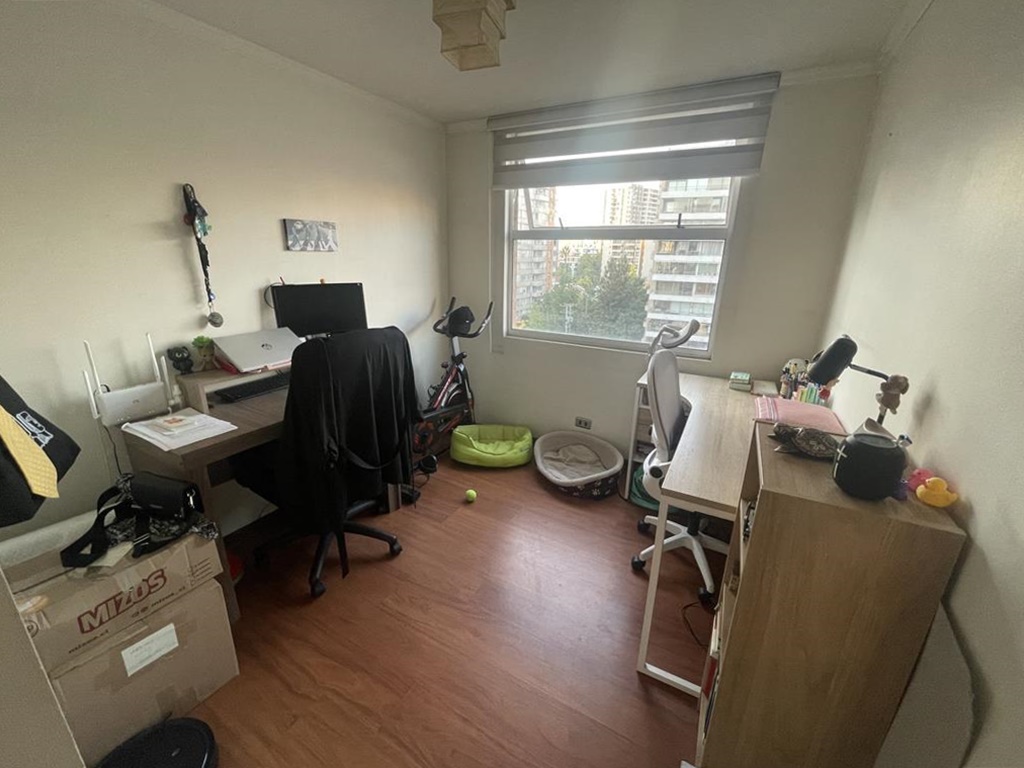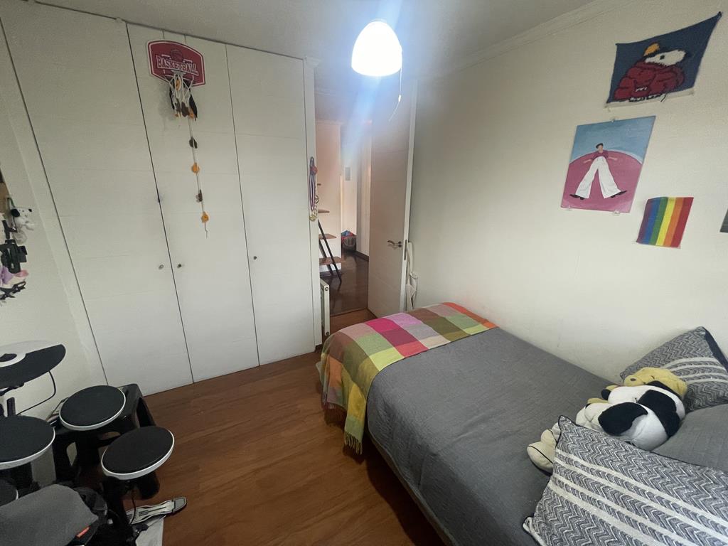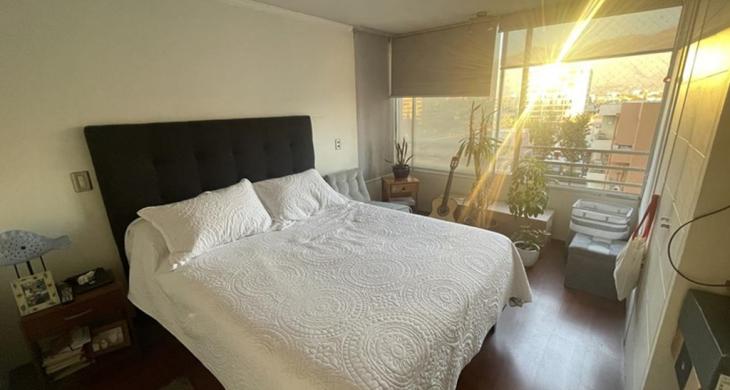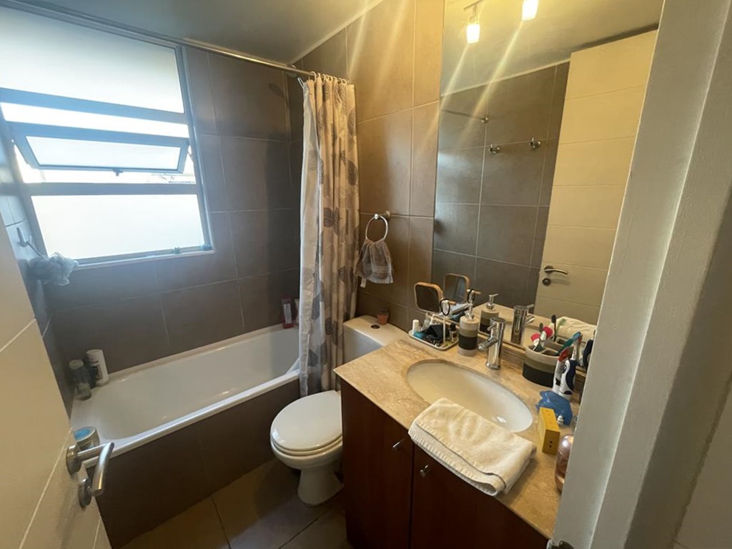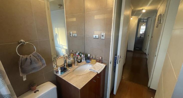 Tres dormitorios de excelente tamaño, el principal es suite, con capacidad para cama king, vista despejada hacia la cordillera, buena capacidad en closets, baño completo con tina y ducha, mueble en el lavamanos, ventana, ventilación natural.