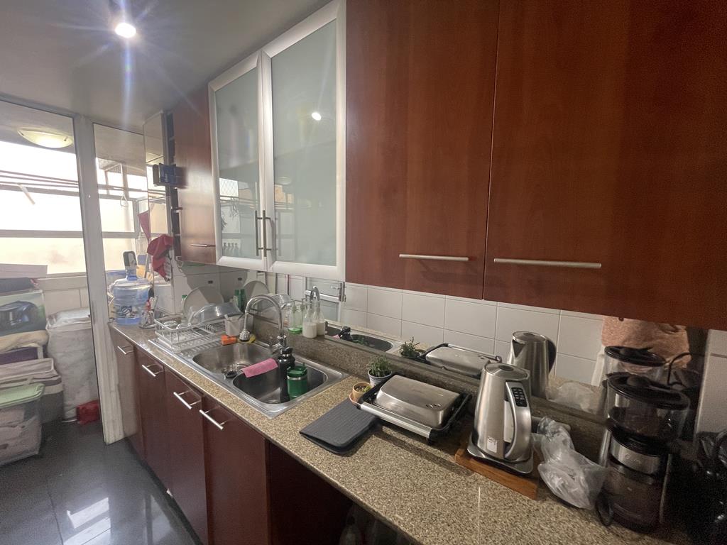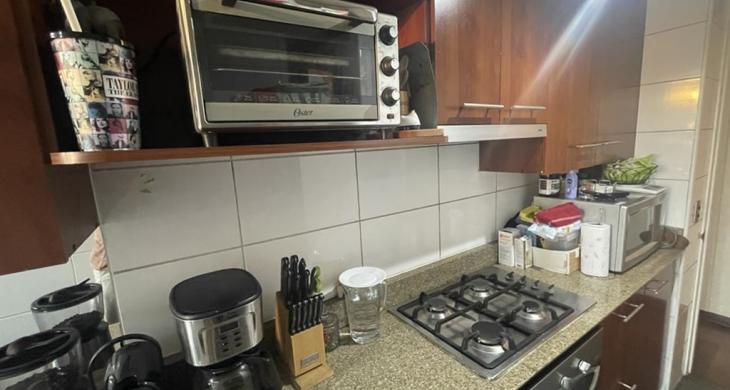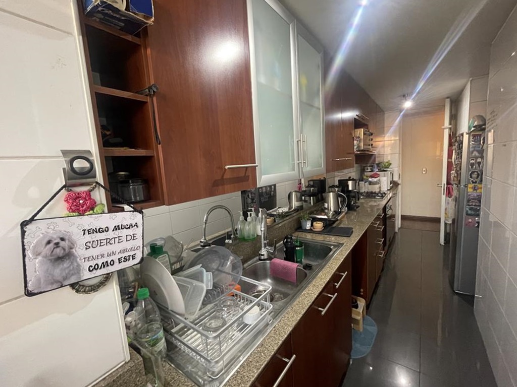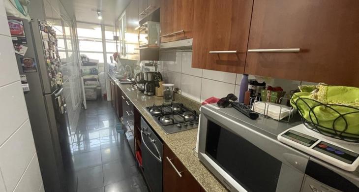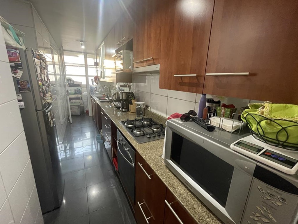 Cocina tradicional, amplia con buenos mesosnes de granito, doble lavaplatos, amoblada y equipada con encimera, horno y campana, cuenta con logia aparte, excelente ventilación.