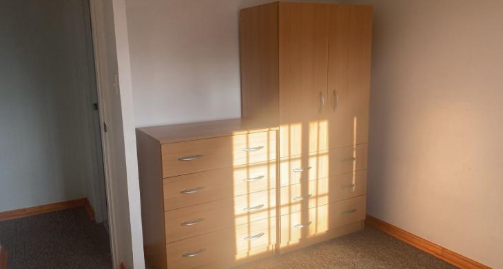 Consta de living, comedor, cocina con lavaplatos y mueble, logia con conexión para la lavadora , dormitorio principal con cómoda y closet, segundo dormitorio alfombrados, baño con tina.