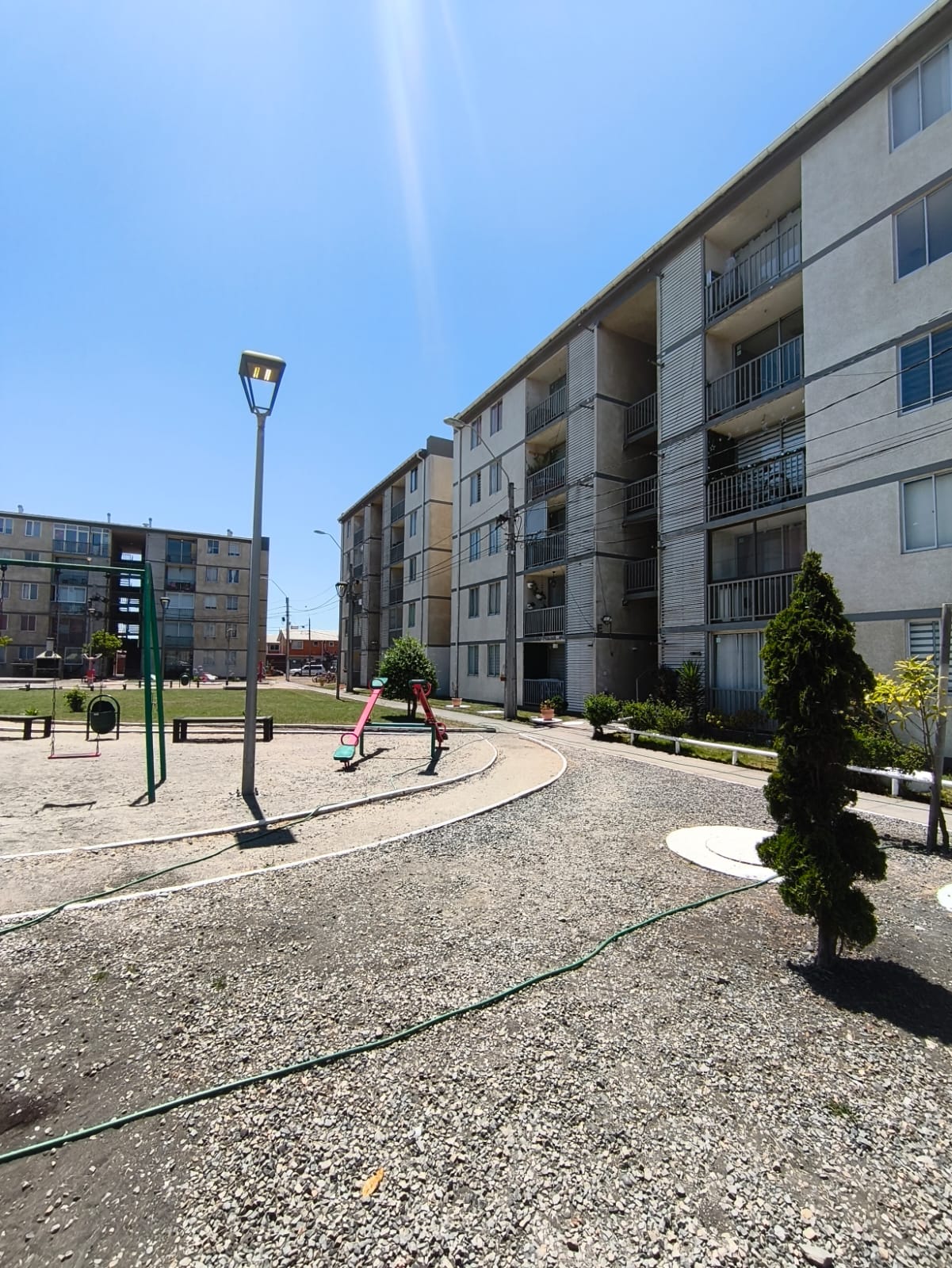 El condominio cuenta con áreas verdes, conserjería, juegos infantiles.