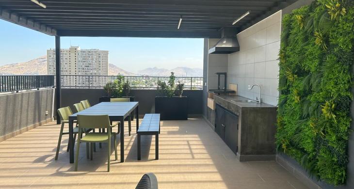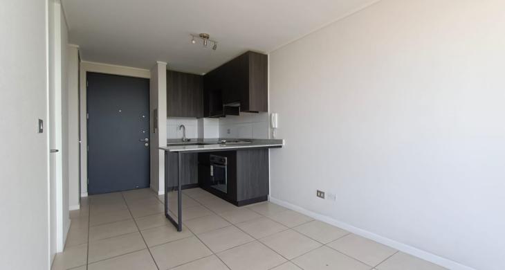 Se arrienda Depto. Nuevo de 1D1B con balcón, conexión a lavadora y termo para el agua caliente, ubicado en Piso 10. Cercano a Metro Gruta Lourdes.